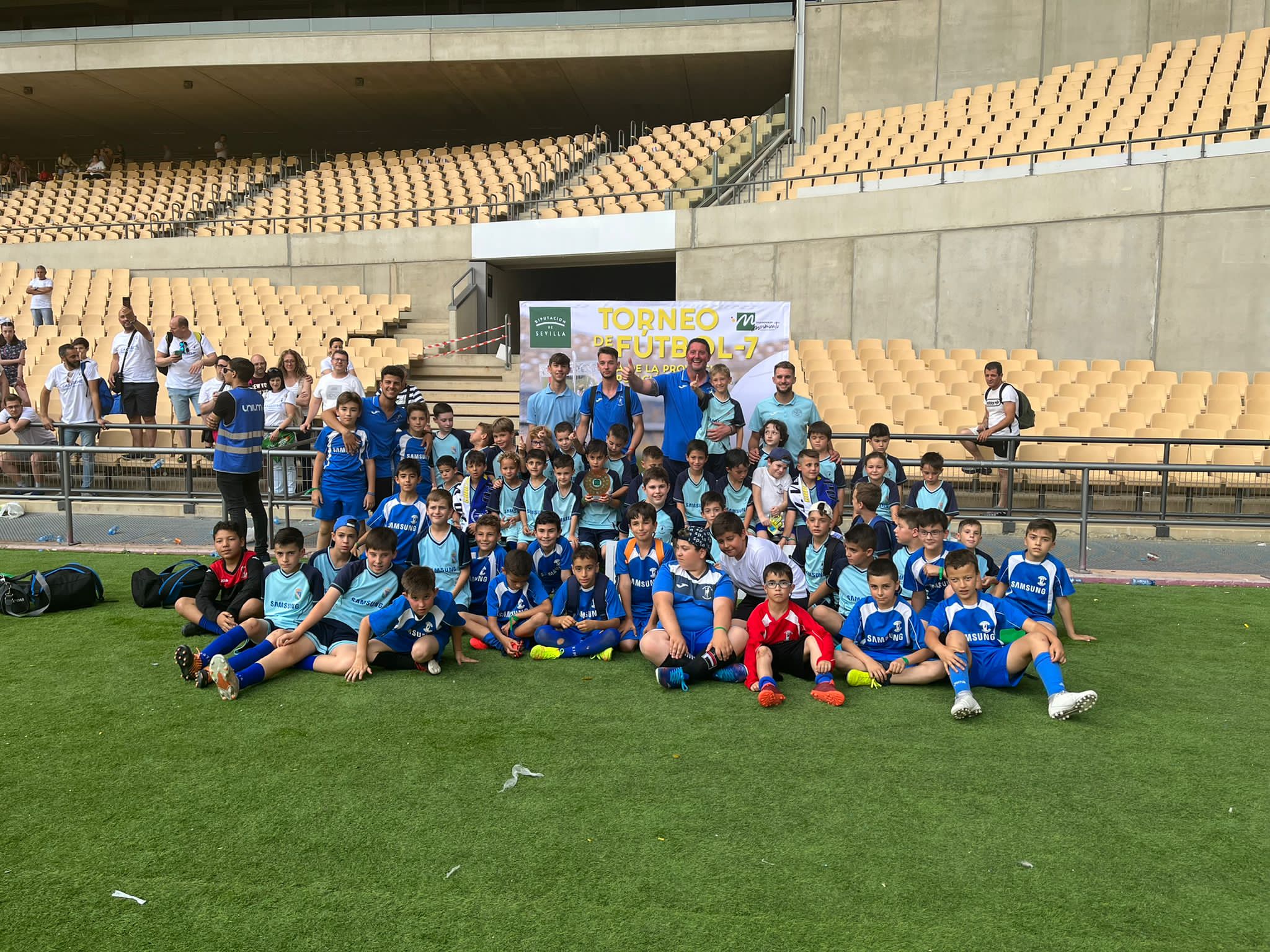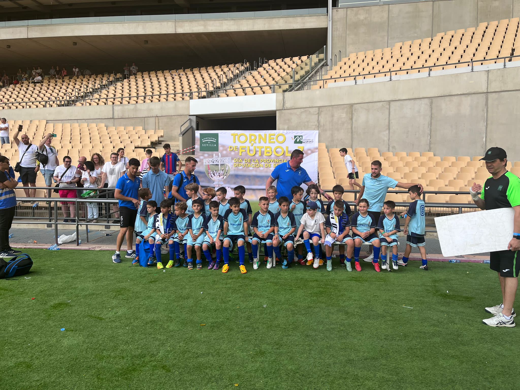Este torneo, disputado el sábado 21 de Mayo en el Estadio Olímpico de la capital hispalense, contó también con la participación de nuestros benjamines y alevines, obteniendo estos últimos el tercer puesto en su categoría. Nuestros deportistas, que estuvieron acompañados por padres y familiares, así como por nuestro Alcalde, Basilio Carrión, y nuestro Concejal de Actividad Física y Deportes, Javier Escalera, además de por sus entrenadores y el Técnico Deportivo local, pasaron una estupenda jornada deportiva y de convivencia, en la que se dieron cita niños de las ligas zonales de Sierra Morena, Aljarafe, Campiña y Sierra Sur de Sevilla.