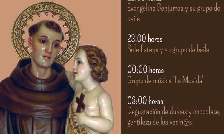 Una vez más, los bailes de nuestra tierra van a iniciar los actos festivos de la velada, que darán comienzo a las diez y media de la noche, con las actuaciones de Evangelina Benjumea, en primer lugar, y de Sole Estepa, a continuación a las once, cada una junto a sus respectivos grupos de baile.