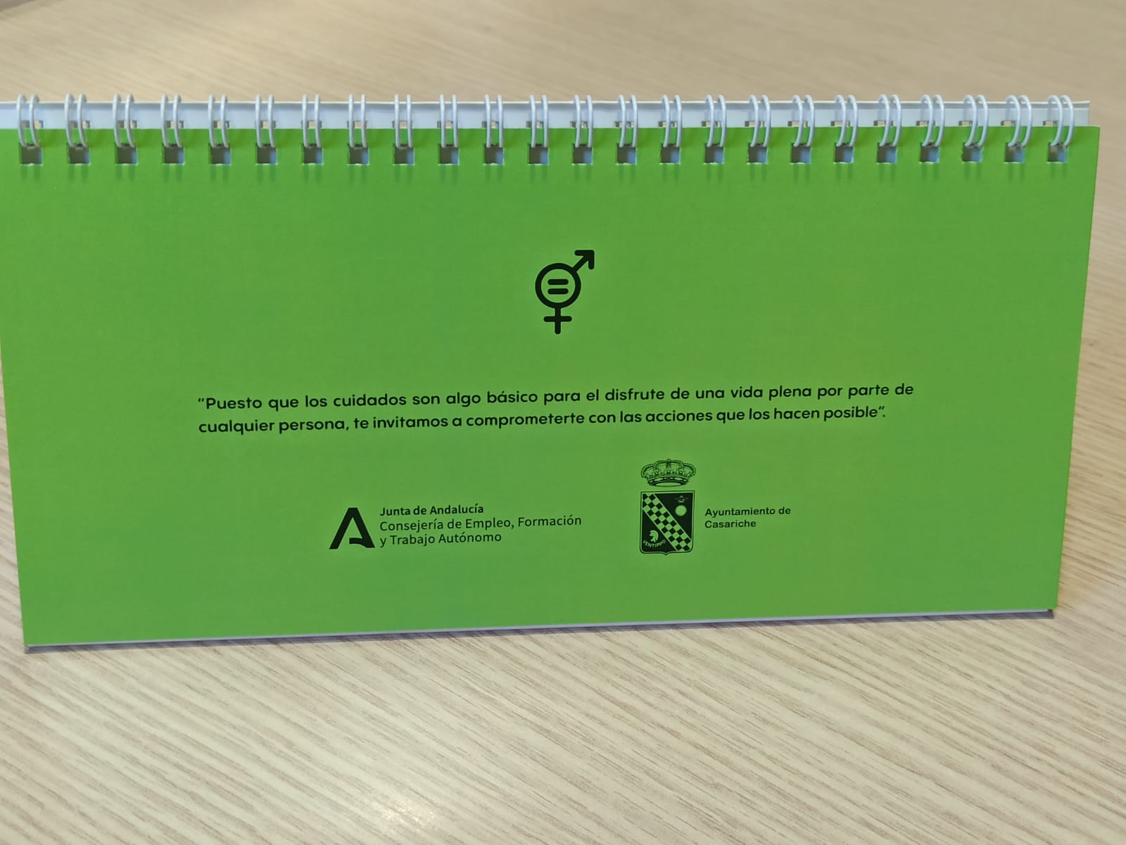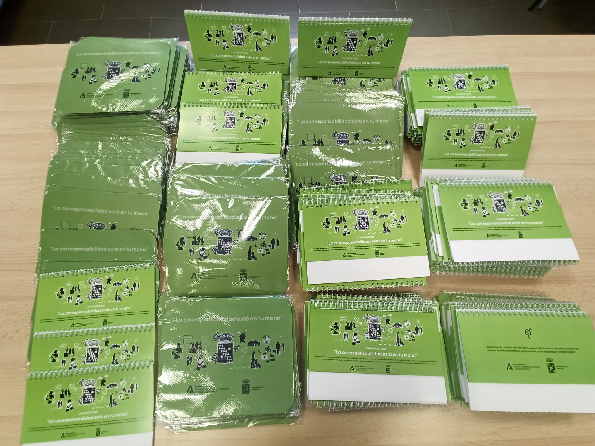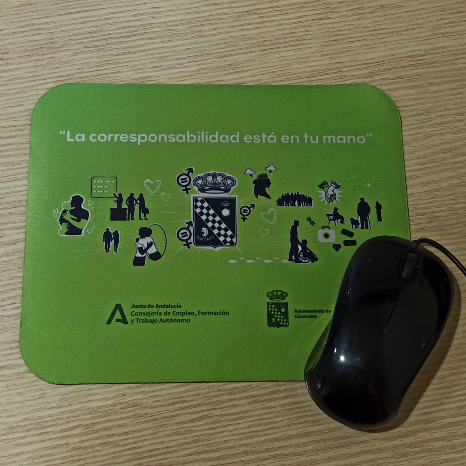 Para ello, se van a repartir entre ellos y ellas alfombrillas de ratón con el eslogan y la imagen de dicha campaña, para puedan tenerlas en su espacio de trabajo, así como calendarios de mesa con espiral, con la imagen de la campaña en la portada, y diferente información sobre los recursos disponibles para ejercer la corresponsabilidad y el reparto de tareas y cuidados, y sus beneficios en cada uno de los meses.