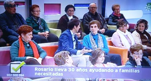 El programa “Tiene Arreglo” de Canal Sur ha reconocido hoy viernes 13 de Diciembre la labor solidaria de nuestra vecina Rosario Molina, que ha dedicado toda su vida, y aún sigue haciéndolo, a ayudar a los demás «desde la prudencia y el silencio». Rosario ha asistido en directo al programa, junto con su hermana María, donde ha recibido un sincero homenaje a toda una vida su labor solidaria, que ha incluido diversos testimonios de amigos y/o personas a las que ha ayudado.