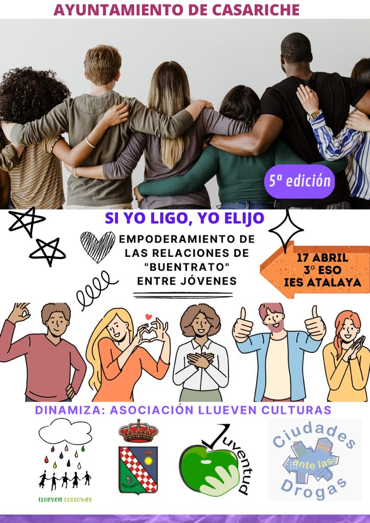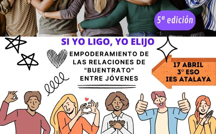 Hoy 17 de Abril se imparte al alumnado de 3º de ESO del IES Atalaya el Taller ‘Si yo ligo, yo elijo’, que abordará el empoderamiento de las relaciones de ‘buen trato’ entre jóvenes.