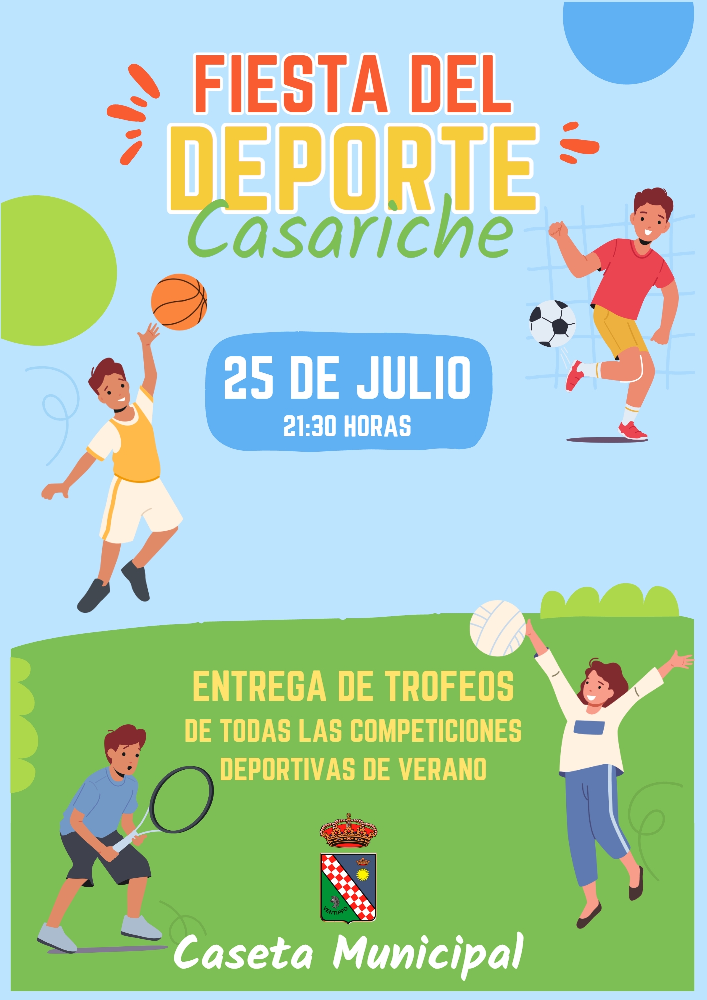El martes 25 de julio, a partir de las 21:30 h, se celebra en la Caseta Municipal la Fiesta del Deporte.