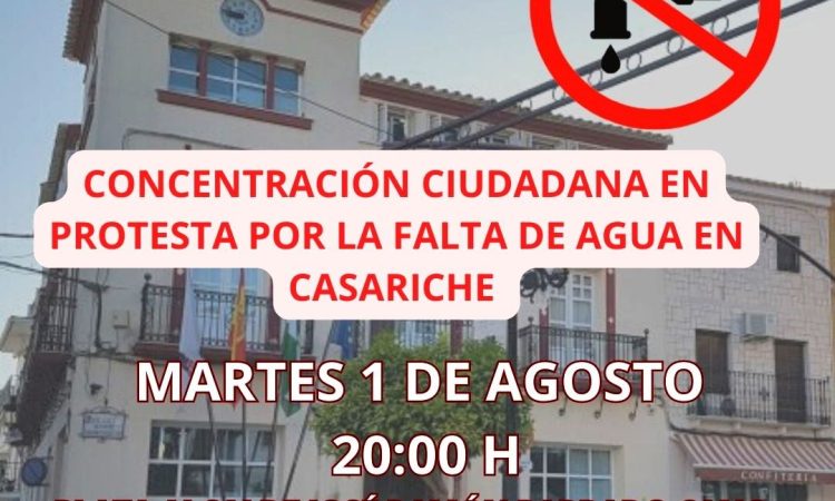 Hoy martes 1 de agosto, a las 20:00 horas, se llevará a cabo en nuestro municipio una acción reivindicativa en protesta por la falta de agua potable en Casariche.