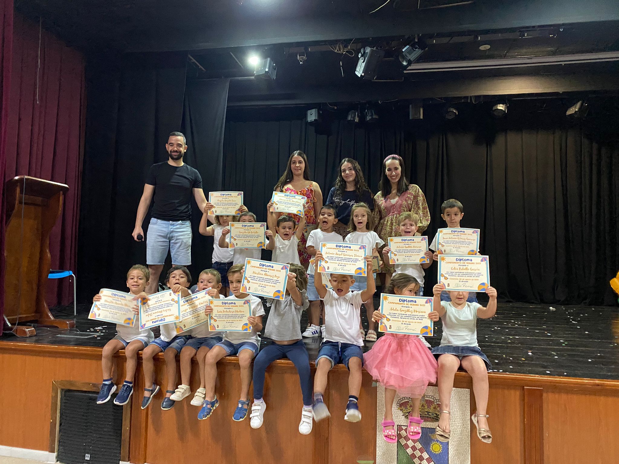 A lo largo de esta jornada, nuestro Concejal de Educación y Cultura, Juan José Pozo acompañado por la técnico encargada del campamento, Silvia Álvarez y por el monitor y monitoras que han conformado el cuerpo de maestros de la escuela de verano este año, hizo entrega de los diplomas al alumnado, después de disfrutar de unos alegres y originales pases de bailes organizados por los pequeños.