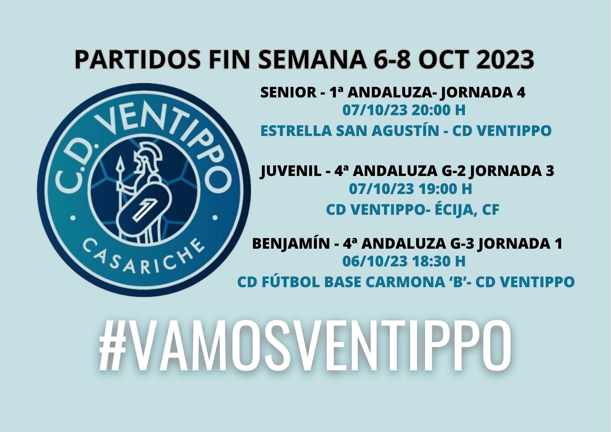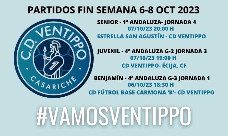 Los juveniles del CD Ventippo juegan también el sábado día 7, en esta ocasión en casa, en el Sergio Carnerero Gil, a partir de las 19:00 h, y se enfrentarán al Écija, CF. La semana pasada empataron (1-1) contra el Lantejuela CD.