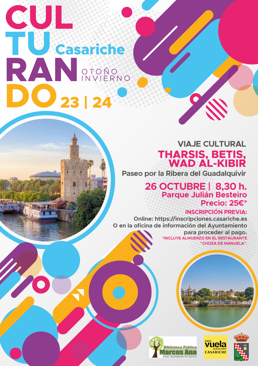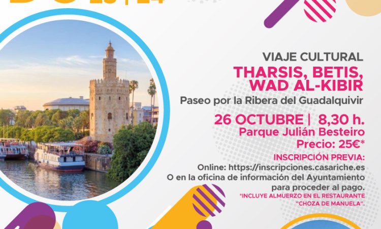 Si estabas echando de menos un viaje cultural, hoy abrimos las inscripciones para uno muy interesante. Se trata de un viaje a Sevilla denominado ‘Tharsis, Betis, Wad Al-Kibir’, paseo por la Ribera del Guadalquivir que se realizará el jueves 26 de octubre saliendo desde el Parque Julián Besteiro a las 08:30 h.