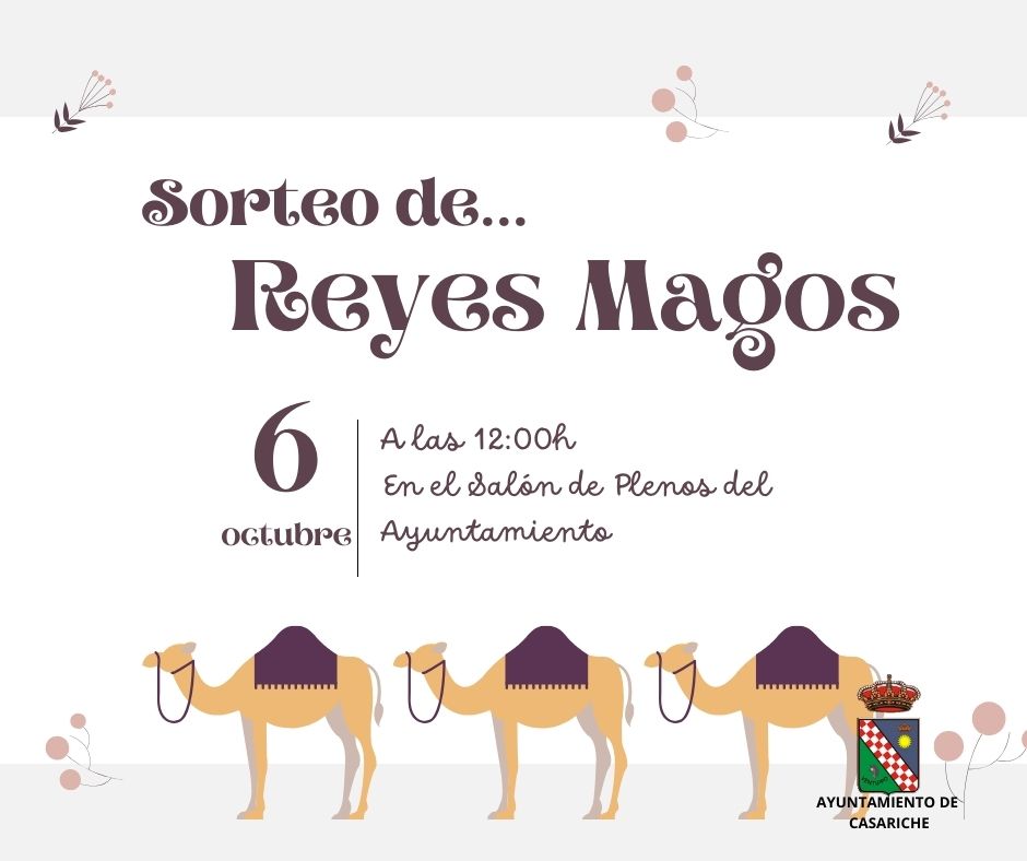 Desde la Delegación de Festejos de nuestro Ayuntamiento comunicamos que el próximo viernes, 6 de octubre se realizará el sorteo de los Reyes Magos para la Cabalgata 2024, el cual se llevará a cabo a las 12:00h en el Salón de Plenos del Ayuntamiento y en el que estarán presentes todas las personas que se hayan inscrito para poder optar a ser Rey Mago el próximo año.