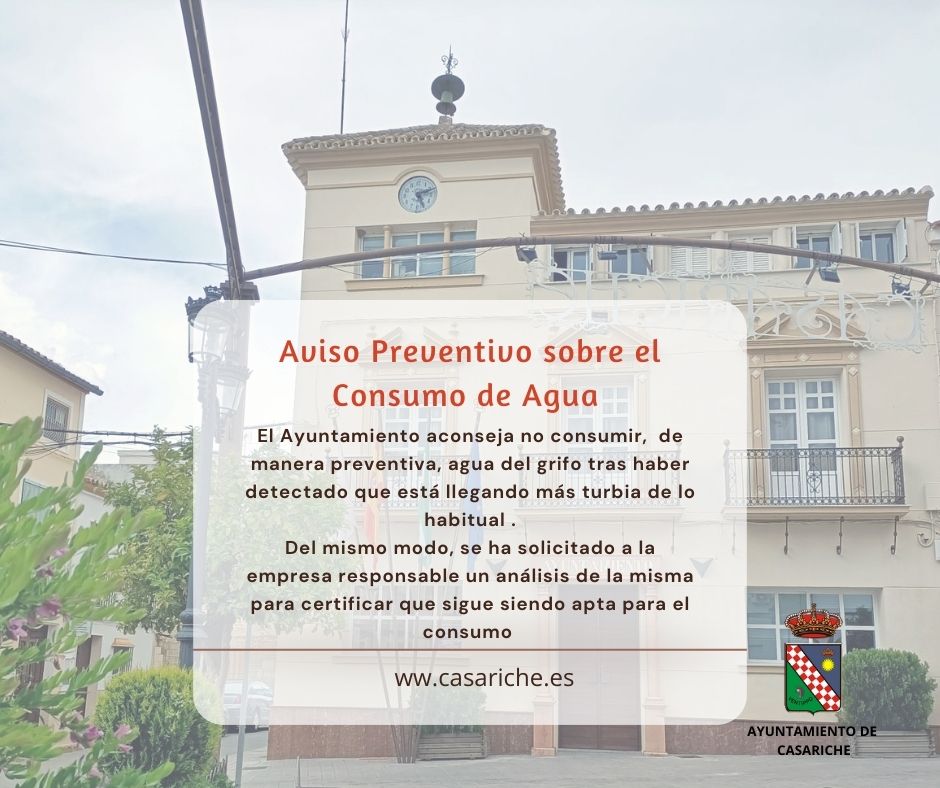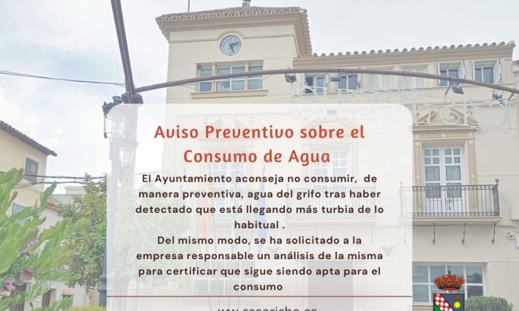 El Ayuntamiento informa que, al haberse detectado que el agua potable está llegando más turbia de lo habitual, se ha contactado con la empresa que realiza los controles de seguridad y sanidad del agua, para que pueda proceder a analizar unas muestras.