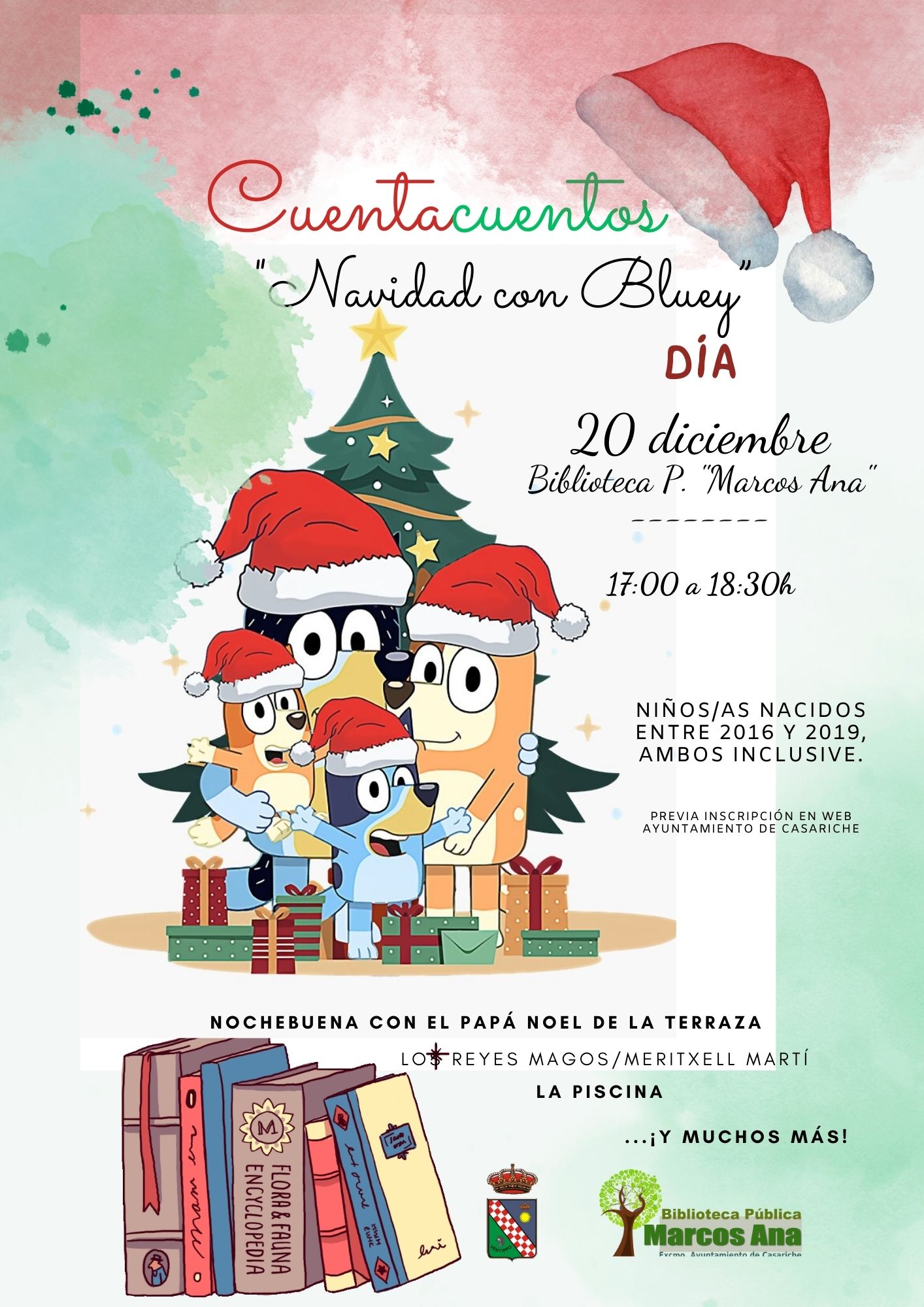 A partir de hoy se pueden realizar las inscripciones para que vuestro hijo/a pueda participar en el cuentacuentos ‘Navidad con Bluey’ que se celebrará el 20 de diciembre en la Biblioteca Pública ‘Marcos Ana‘, en horario de 17:00 h a 18:30 h y está dirigido a niños y niñas nacidos entre 2016 y 2019 (ambos años inclusive).