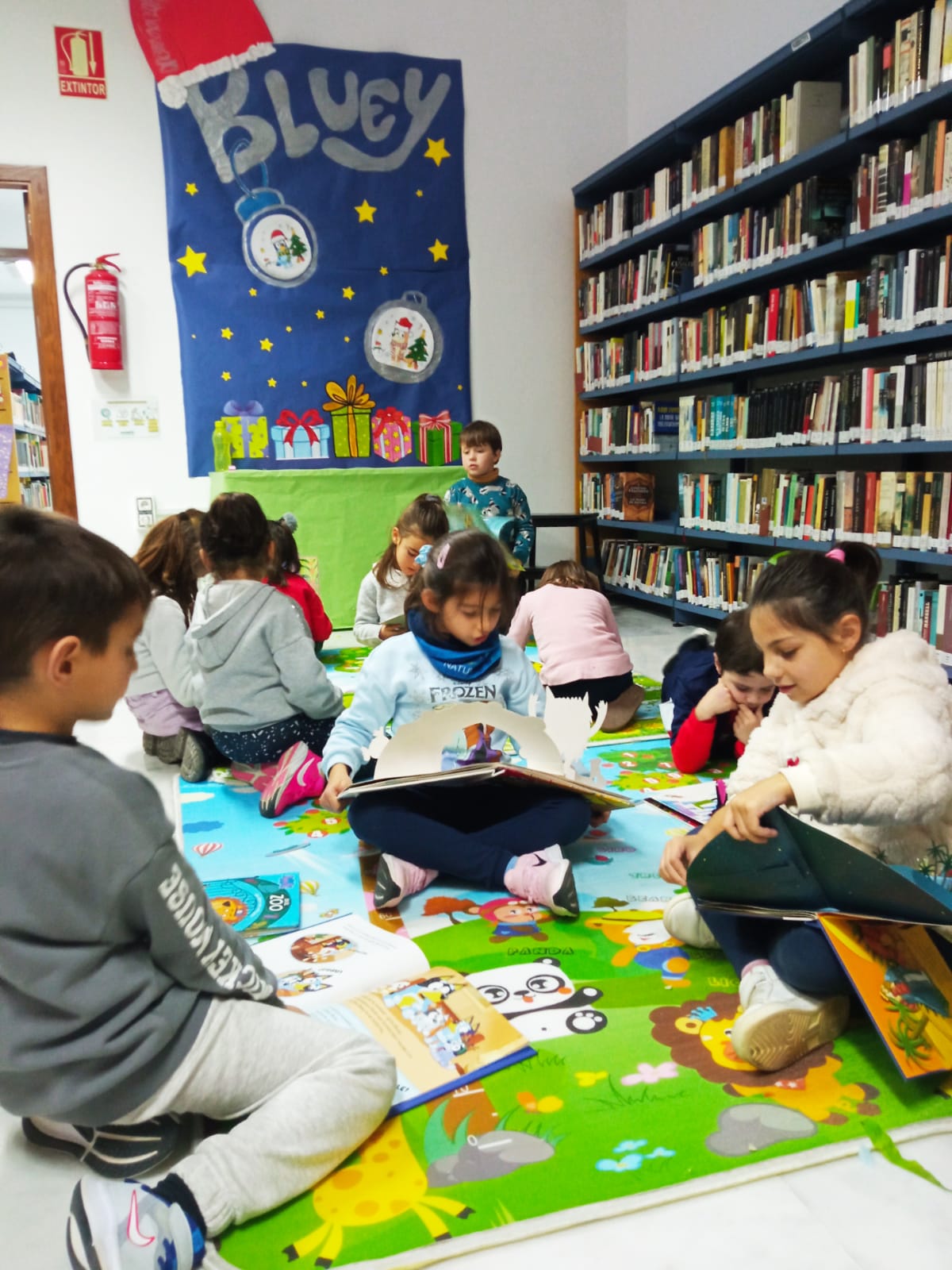 Durante este cuentacuentos, se leyeron cuentos de la colección de Bluey como ‘Nochebuena con el Papa Noel de la terraza’, un conjunto de cuentos pedagógicos, que narran las aventuras de Bluey y Bingo, dos cachorritas de perro alegres y divertidas que viven diferentes situaciones en familia, así como otras propuestas de lectura educativa como ‘Los Reyes Magos’, de Meritxel Martí.