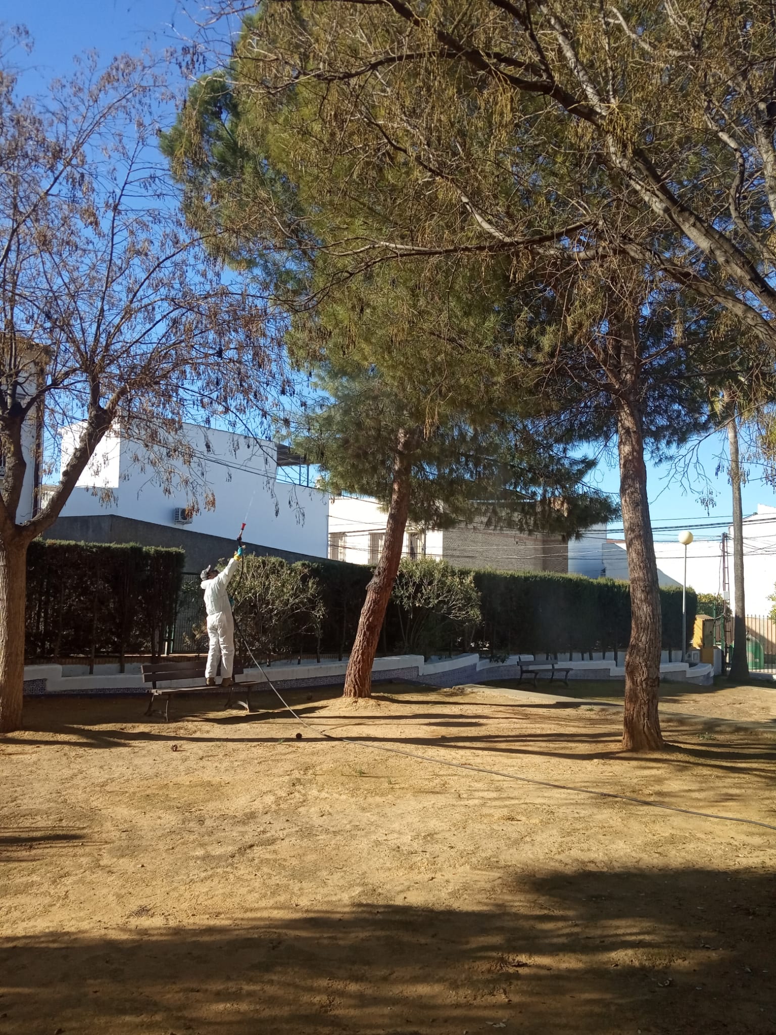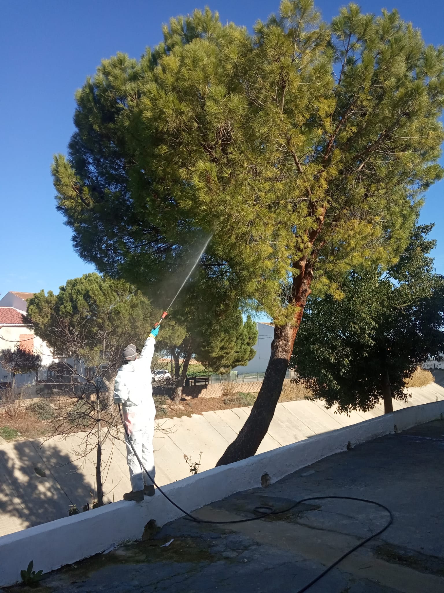 La Delegación de Medio Ambiente del Ayuntamiento de Casariche acaba de finalizar la fumigación de todos los pinos de nuestro municipio con el fin combatir la procesionaria.