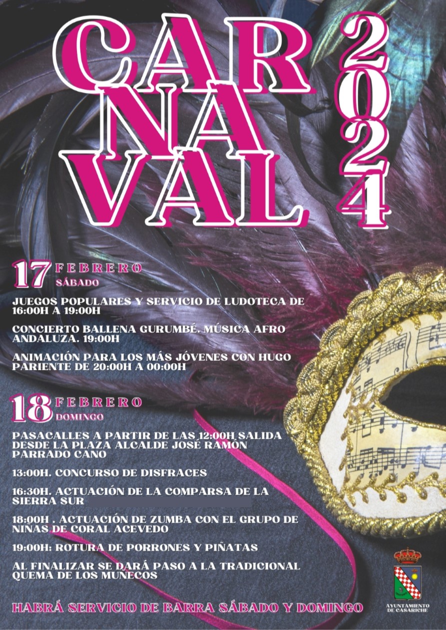 ¡Os esperamos y os animamos a acudir disfrazados para pasar un estupendo fin de semana carnavalero en nuestro pueblo!