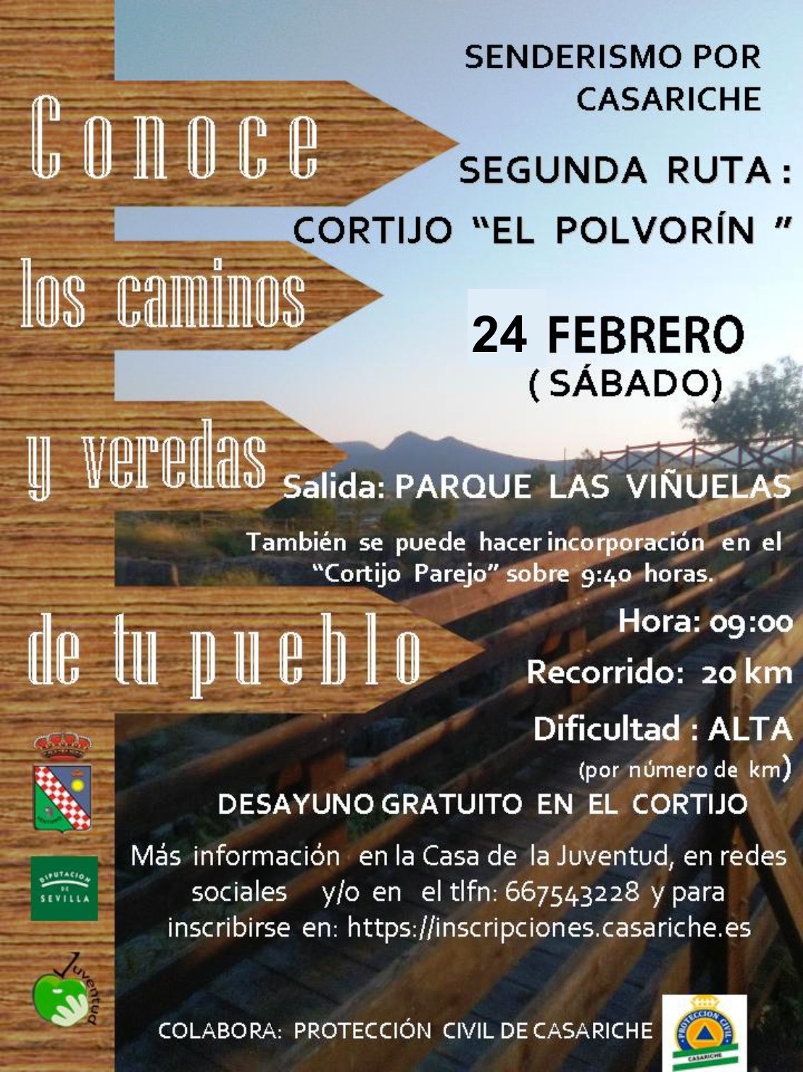 El horario de salida desde el Parque de las Viñuelas será a las 09:00 h del día 24 y también será posible incorporarse en el ‘Cortijo Parejo’ sobre las 09:40 h.