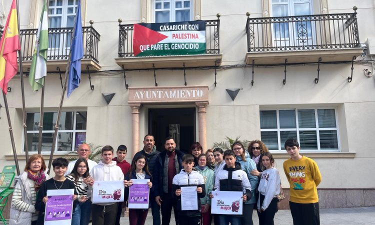 El Salón de Plenos de nuestro Ayuntamiento ha acogido en la mañana de hoy 8 de marzo, a partir de las once y media, una reunión entre alumnado de secundaria del IES Atalaya, acompañado por su profesor, Juan José Pozo, con nuestro Alcalde, José Ramón Parrado, con el fin de informarle sobre su proyecto de calles de Casariche en igualdad.