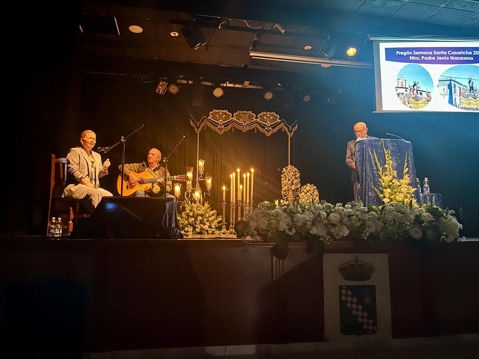 El acto fue presentado por María Carmen Carrascosa y el pregonero por Inmaculada Gómez Giráldez, que retrató la figura cristiana y el gran sentir cofrade de Jesús, estepeño de nacimiento, pero casaricheño de sentimiento.