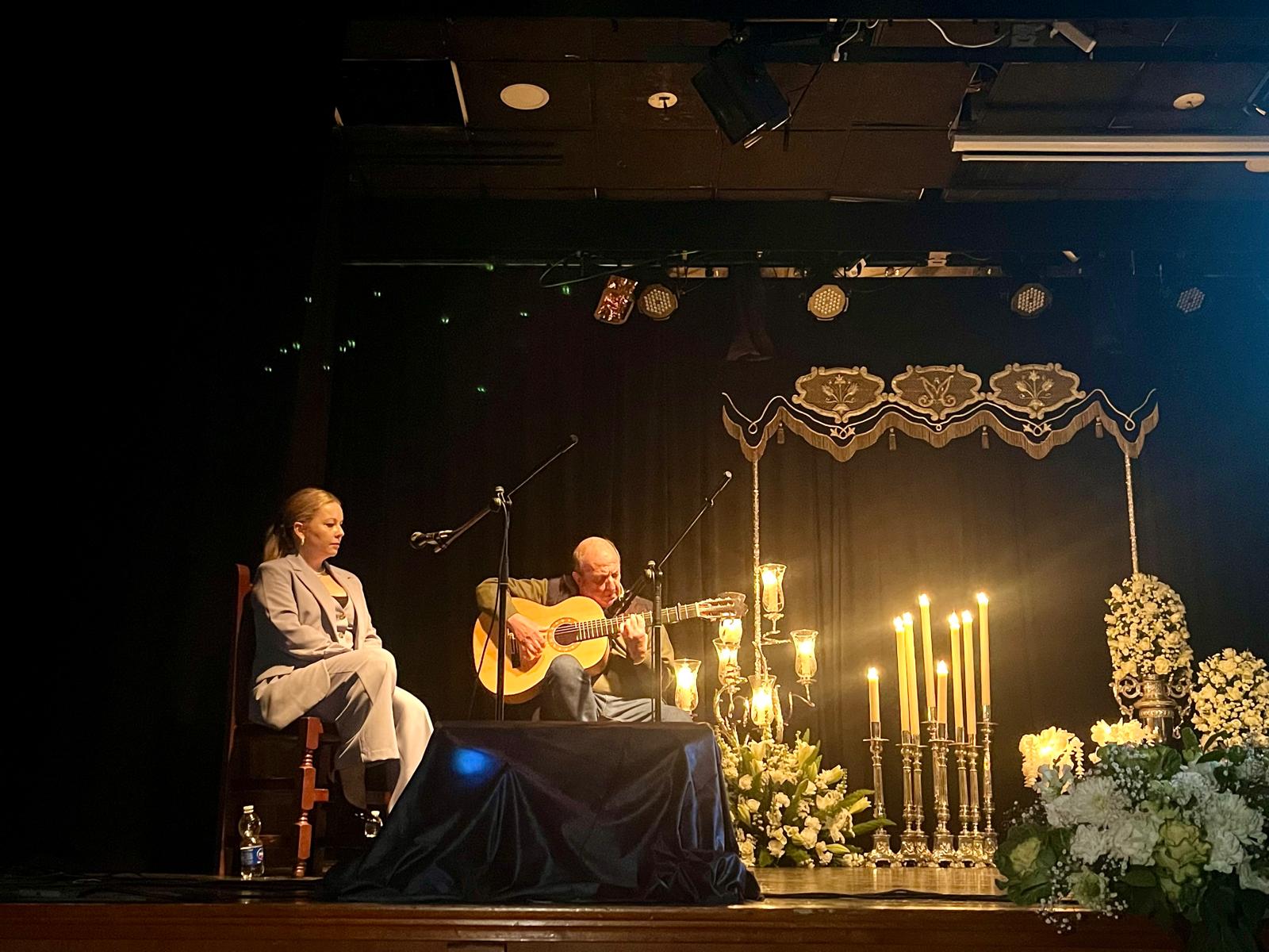 Asimismo, se contó con la colaboración de la Asociación Cultural Musical ‘Maestro Vitito’, que interpretó tres marchas procesionales, y de los artistas locales José Esteban Rodríguez Cosano y Lucía Linares Álvarez, que contribuyeron también a impregnar nuestro Teatro Municipal del ambiente cofrade que este acto requiere.