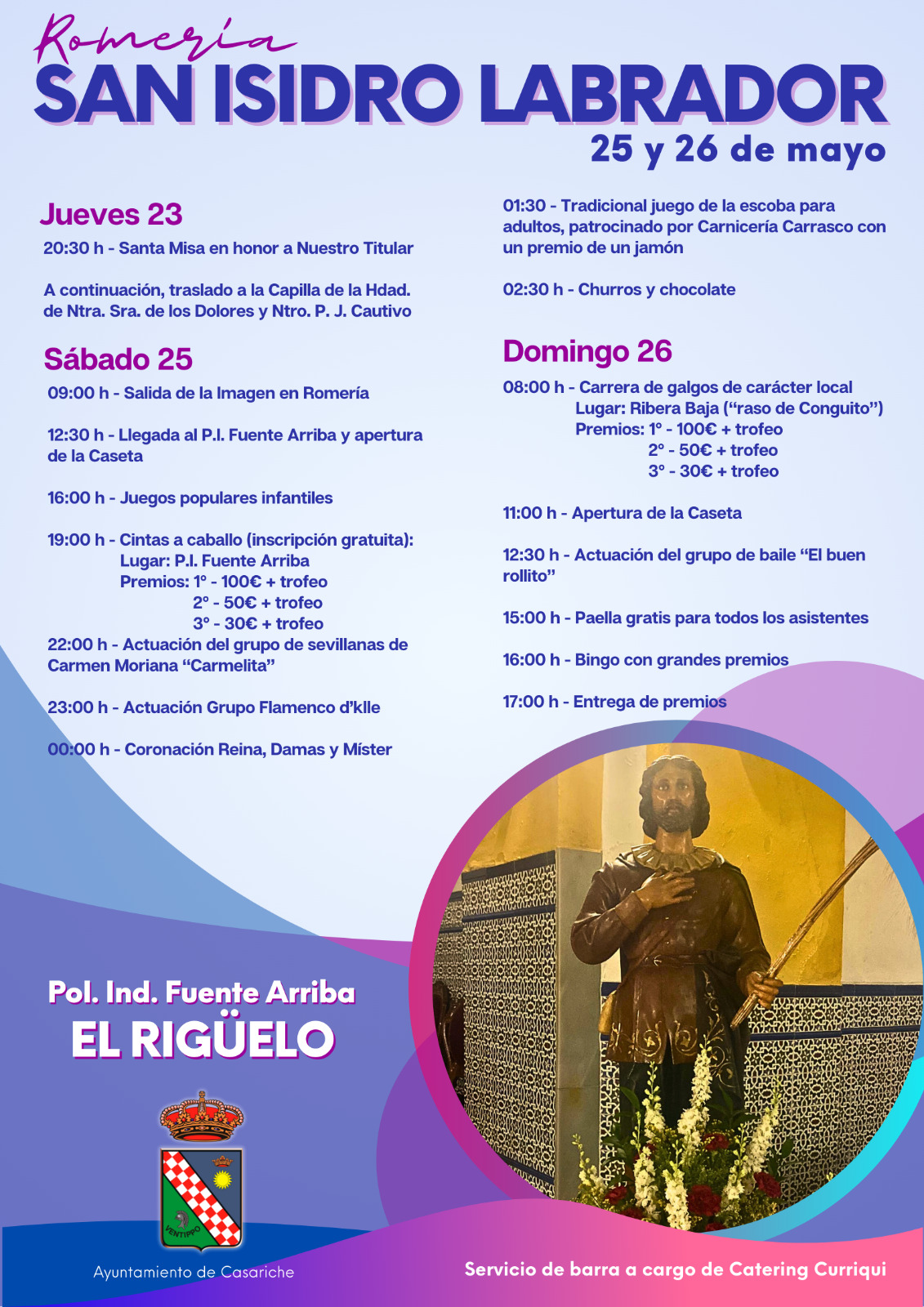 19:00h: Carrera de cintas a caballo en el P.I. Fuente Arriba. La inscripción es gratuita. Premios: 1º: 100€ + trofeo, 2º: 50€ + trofeo y 3º: 30€ + trofeo.