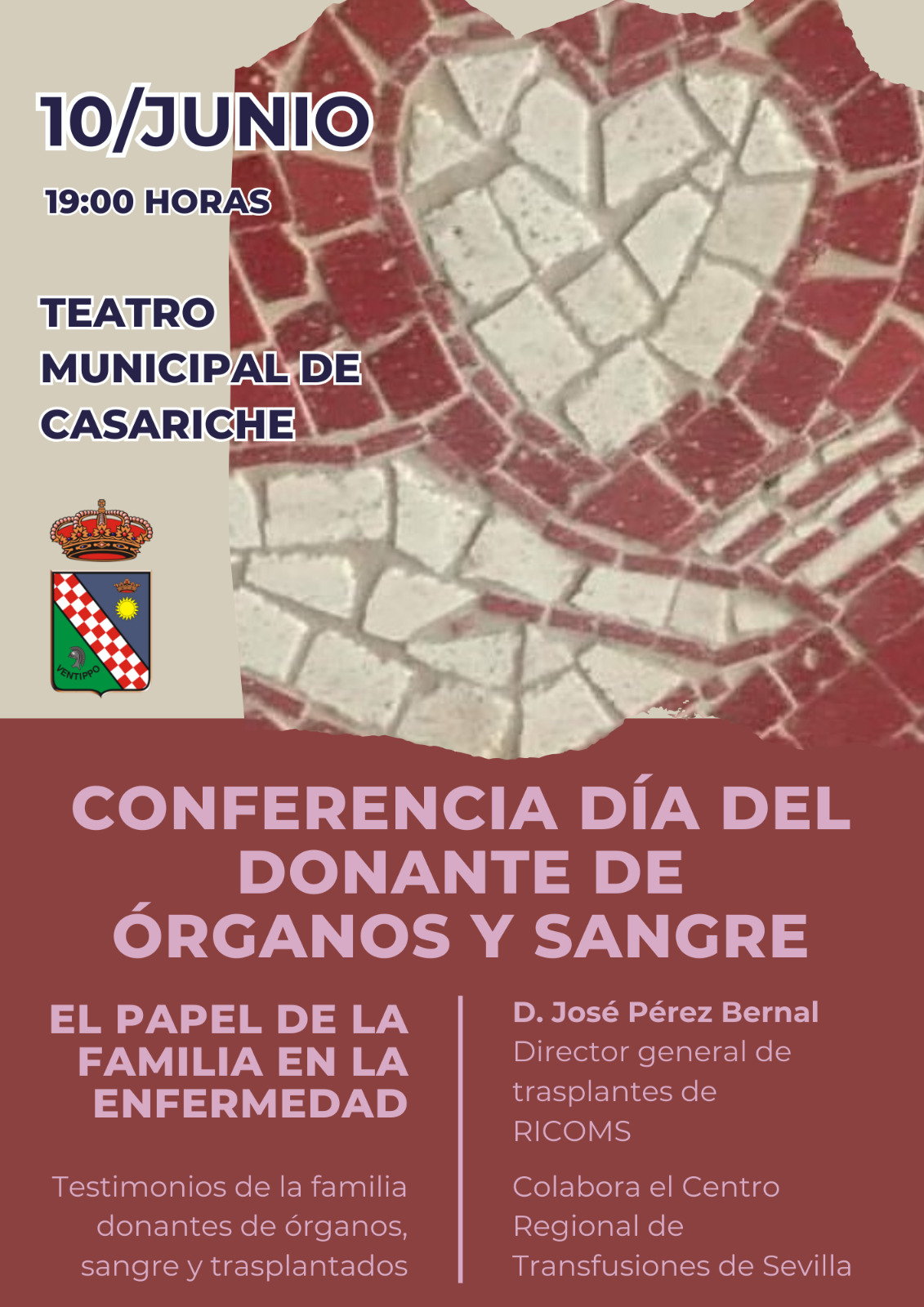 Con motivo de la proximidad de dos conmemoraciones fundamentales para la vida de las personas como son el Día Mundial del Donante de Órganos, que se celebró ayer 5 de junio, y el Día Mundial del Donante de Sangre, cuyo día es el 14 de junio, el Teatro Municipal acogerá este lunes 10 de junio, a las 19:00h, la Conferencia ‘El papel de la familia en la enfermedad’, a cargo del Doctor José Pérez Bernal, Director general de trasplantes del Real e Ilustre Colegio de Médicos de Sevilla (RICOMS).