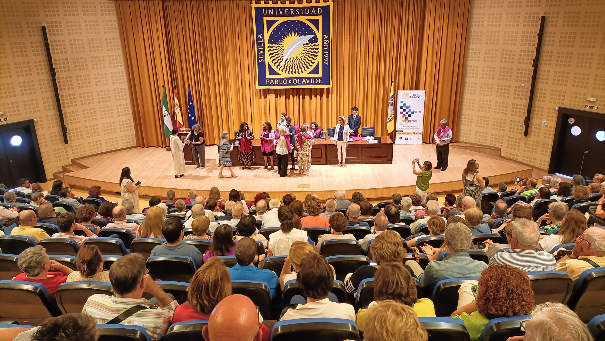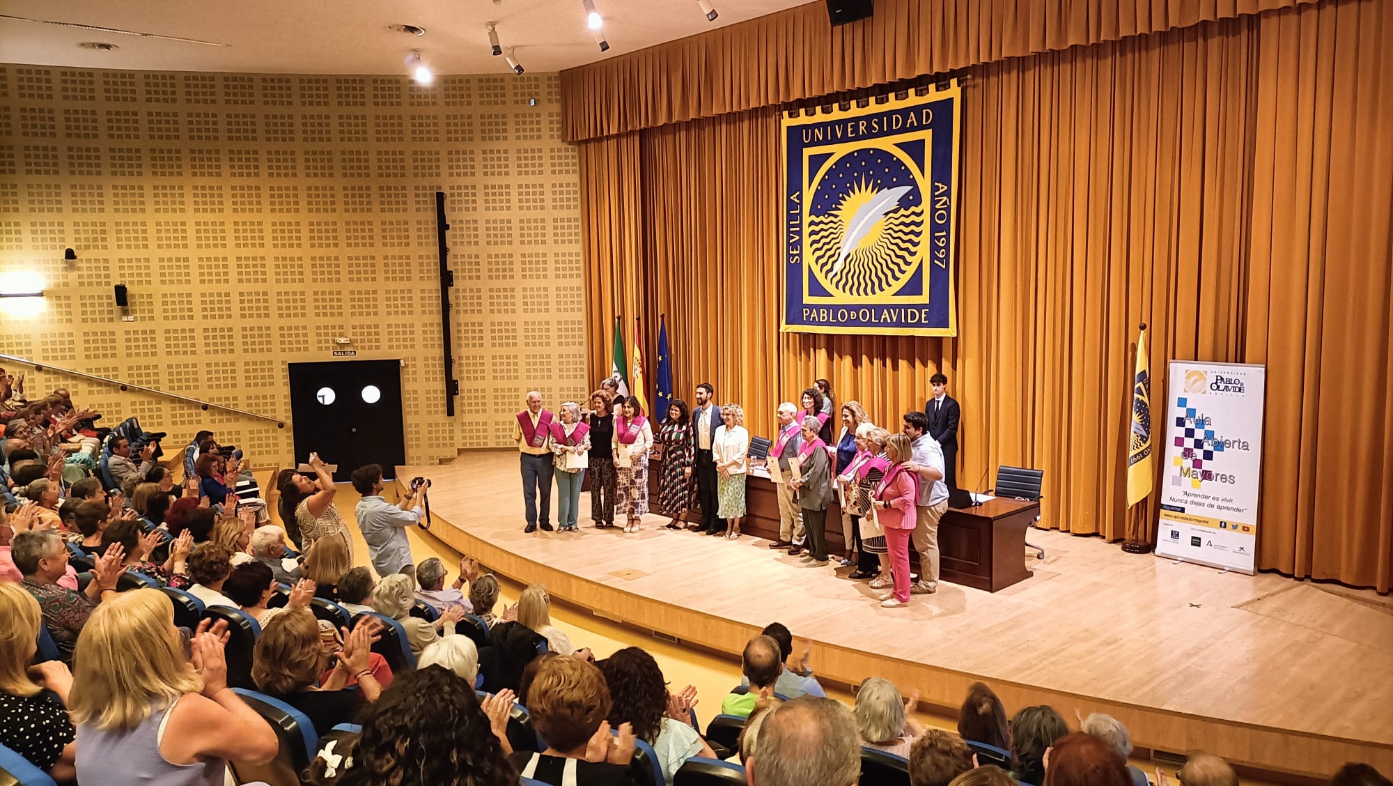 Casariche estuvo presente ayer por la tarde en el Paraninfo de la Universidad Pablo de Olavide en la celebración del primer acto de graduación del Programa Aula Abierta de Mayores de la UPO de este año, en el que se llevó a cabo la imposición de becas y la entrega de diplomas al alumnado de varios municipios que han completado el curso del Ciclo Básico y Continuidad.