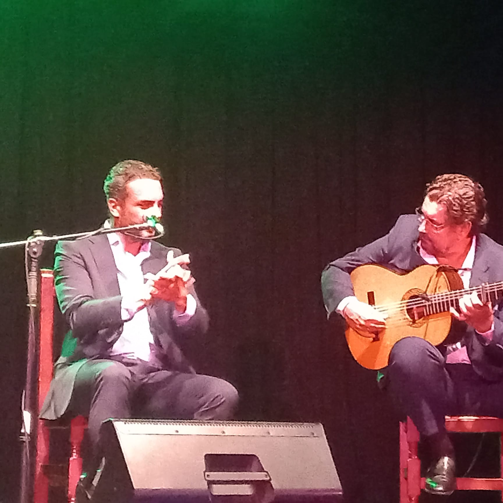 Fue una noche mágica, en la que Pedro hizo una exhibición fuera de lo normal, con una entrega absoluta y un acompañamiento magistral por parte de Patrocinio Hijo, deleitándonos con vidalita, siguiriyas, soleá, tientos, fandangos, bulerías y un fin de actuación de lujo en el que interpretaron el Réquiem de Vicente Amigo a la muerte de Paco de Lucía, que hizo estremecer al público asistente.