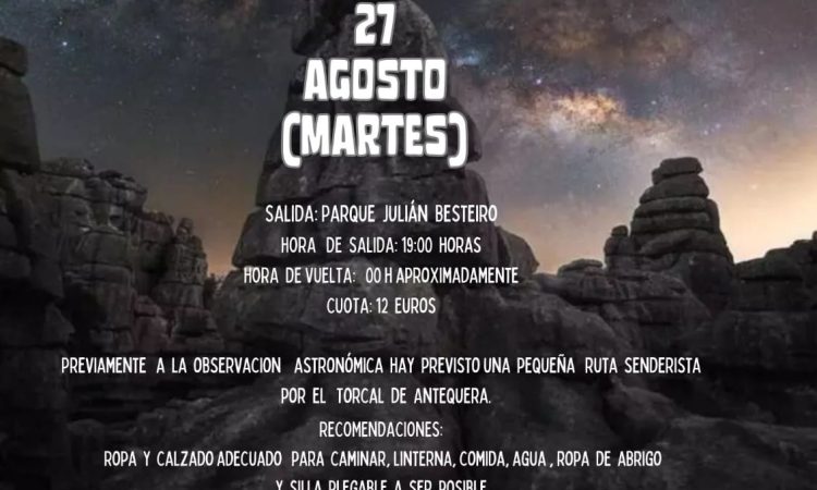 La salida hacia el Torcal de Antequera está prevista a las 19:00h de la tarde desde el Parque Julián Besteiro y la cuota de inscripción es de 12€ por persona.