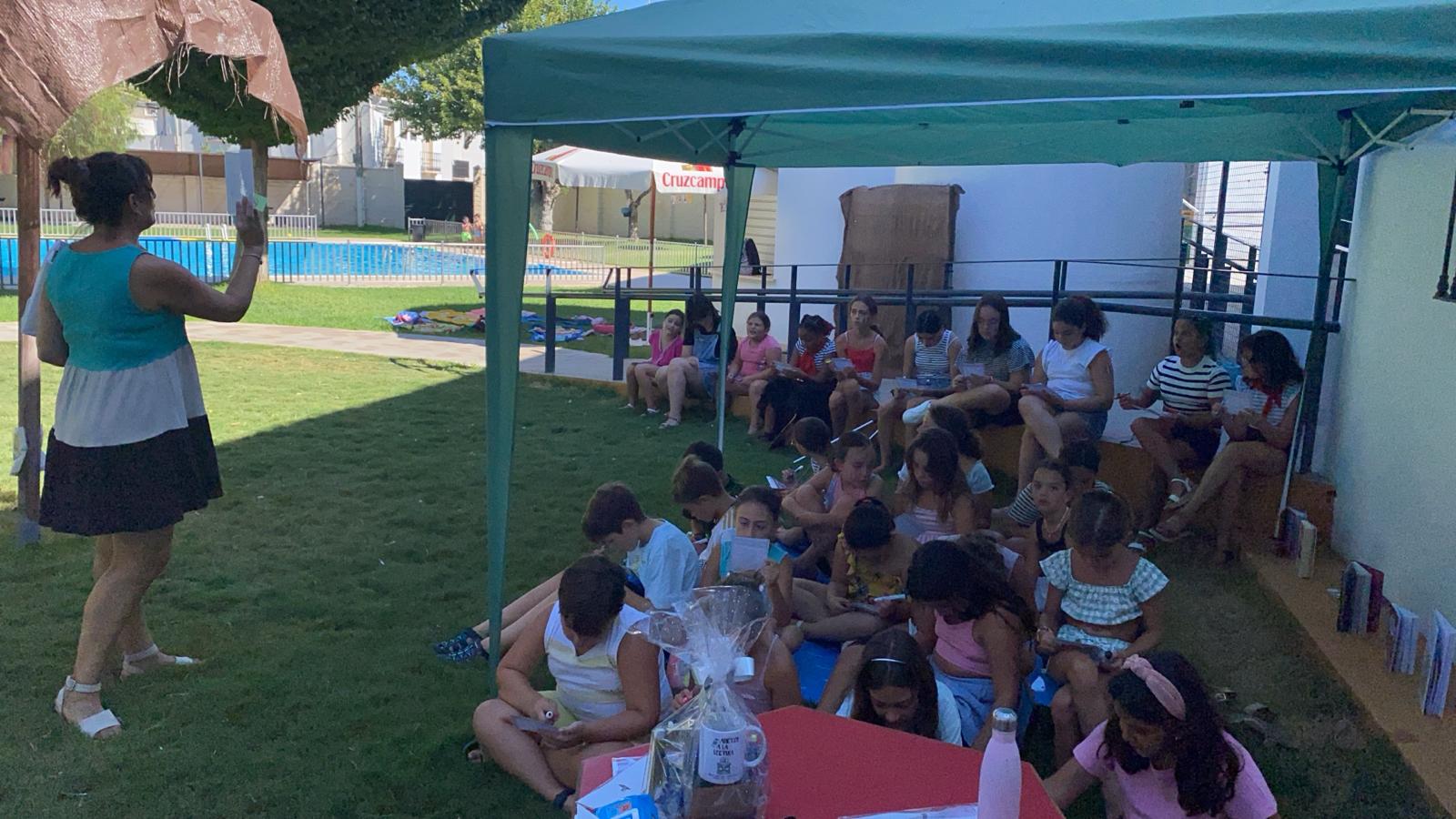Ayer lunes por la mañana se celebró un Bingo de Cuentos en la piscina municipal, en el que participaron un grupo de niños y niñas de la Escuela de Verano.
