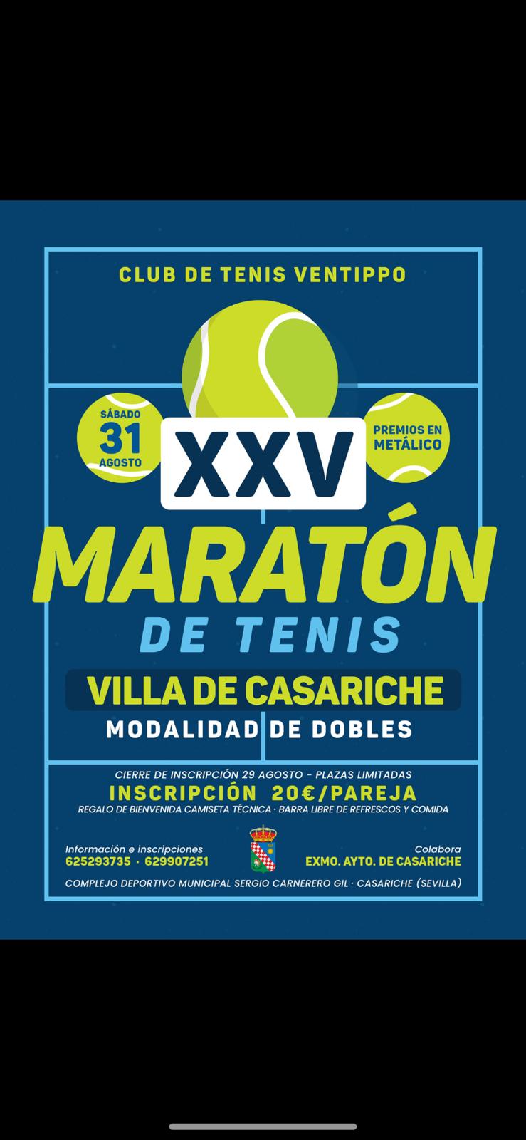 Desde la Delegación de Deportes, os animamos a participar en esta nueva edición organizada por el Club de Tenis «Ventippo», en la que, como cada año, colabora el Excmo. Ayuntamiento de Casariche.