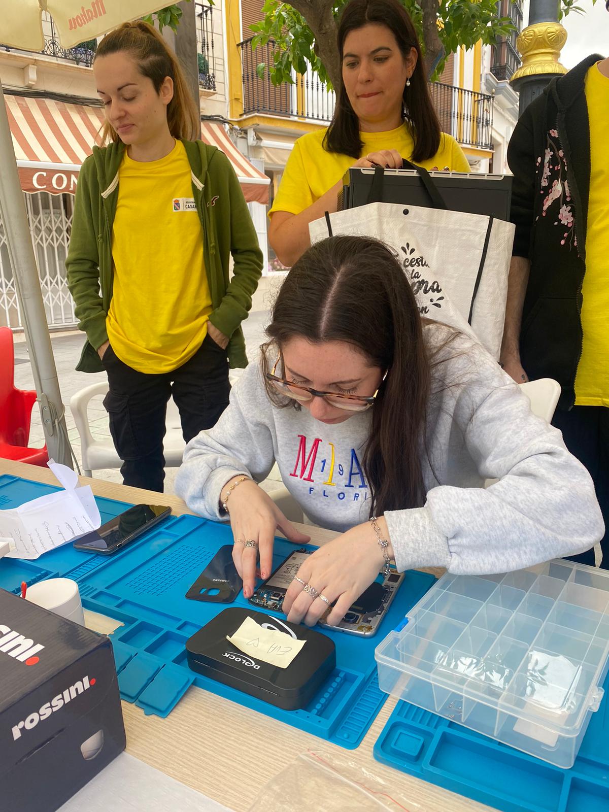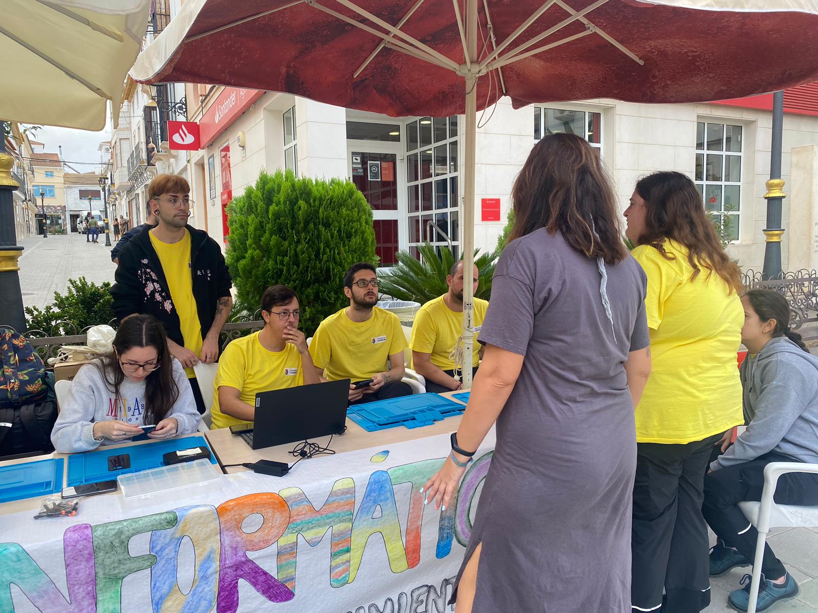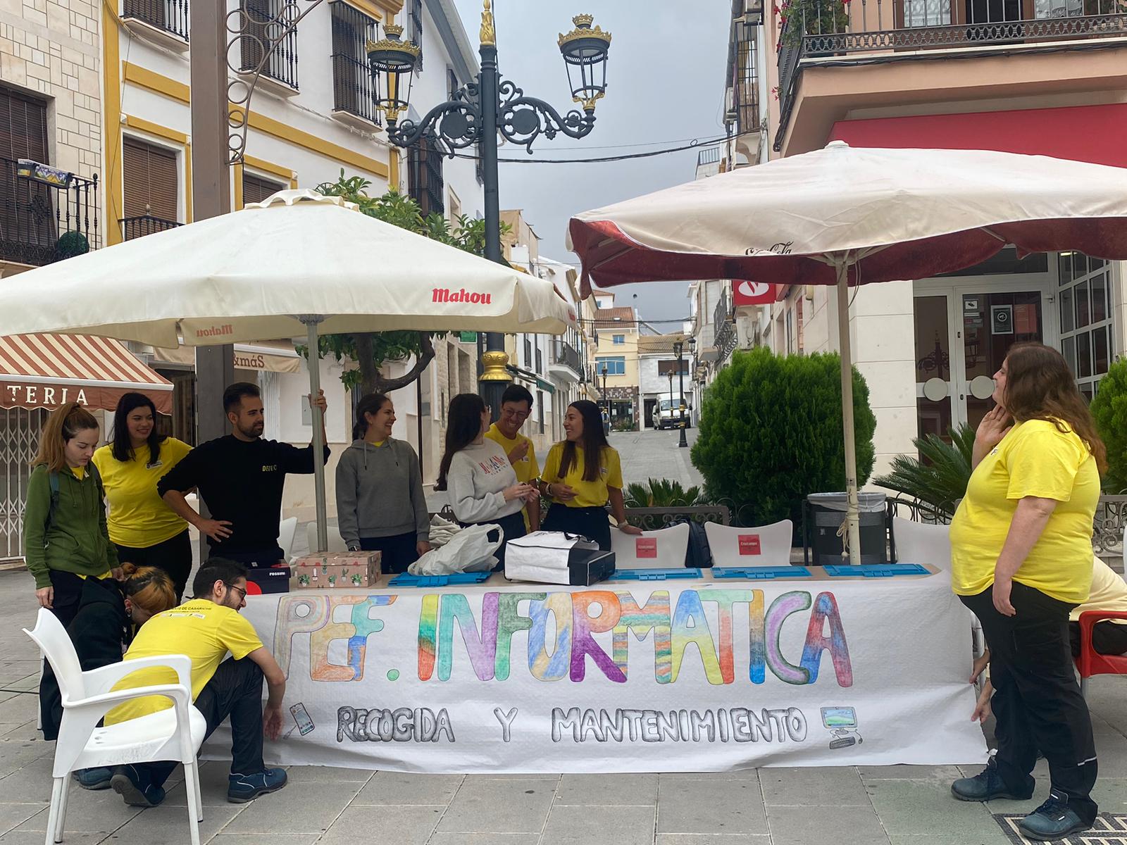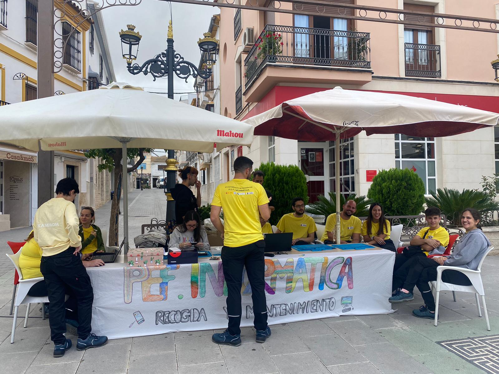 El pasado jueves, el taller del Programa de Empleo y Formación (PEF) de Informática instaló en la Plaza Alcalde José Ramón Parrado Cano un punto de recogida de móviles, ordenadores, consolas o aparatos electrónicos que no funcionen correctamente, con el fin de repararlos de forma gratuita, siempre que fuese posible, o en caso contrario, para que se utilizase como punto de reciclaje de chatarra informática que cualquier vecino o vecina quiera desechar.