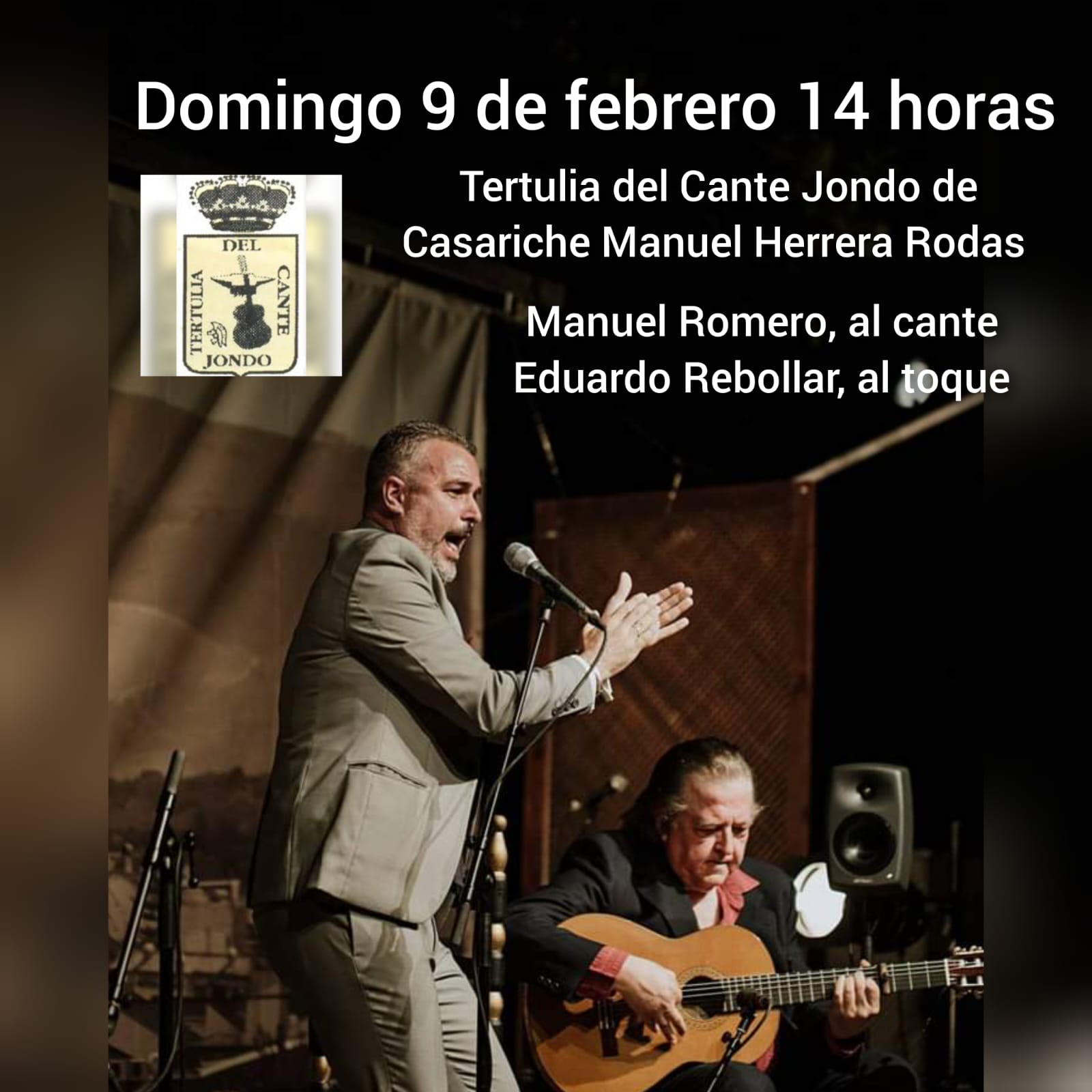 La Tertulia del Cante Jondo de Casariche ‘Manuel Herrera Rodas’ acogerá el domingo 9 de febrero, a las 14:00 h, un recital de cante a cargo de Manuel Romero ‘El Cotorro’, al cante, y Eduardo Rebollar, al toque.