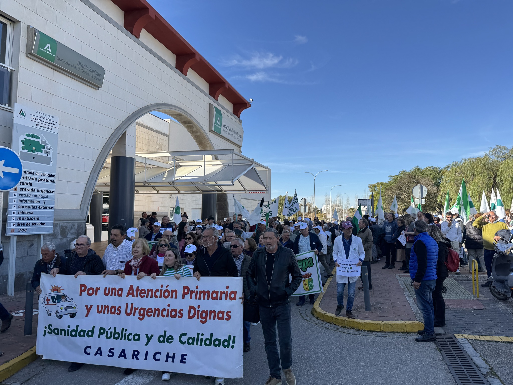 En la mañana de ayer se celebró una pancartada a las puertas del Hospital Comarcal de La Merced de Osuna. Un nuevo acto reivindicativo en defensa de la Sanidad Pública y de la alarmante situación en la que se encuentra el Área Sanita de Osuna.