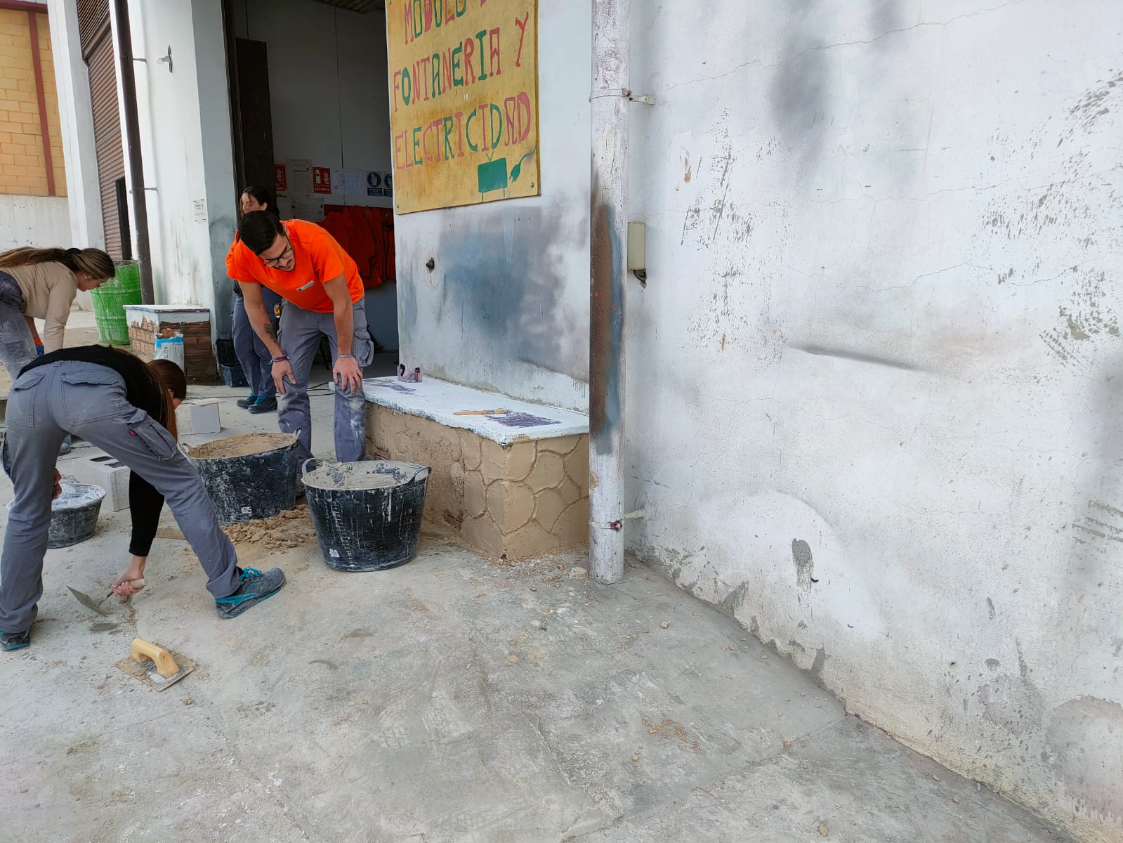 El alumnado del Programa de Empleo y Formación de ‘Oficios (Fontanería, Electricidad y Albañilería)’, está en la actualidad formándose en el certificado de profesionalidad de albañilería, cuyo monitor es Rafa Castillo.