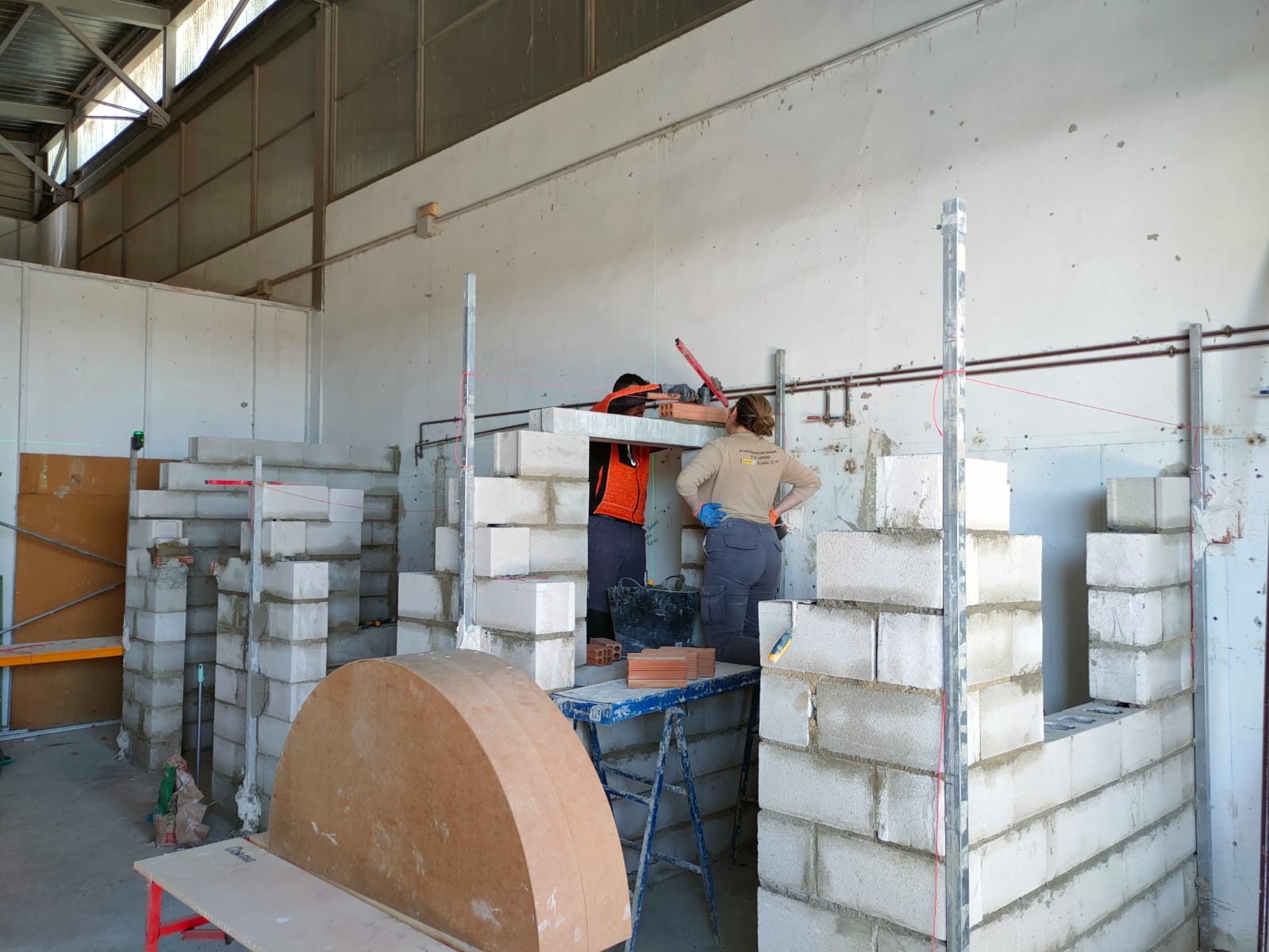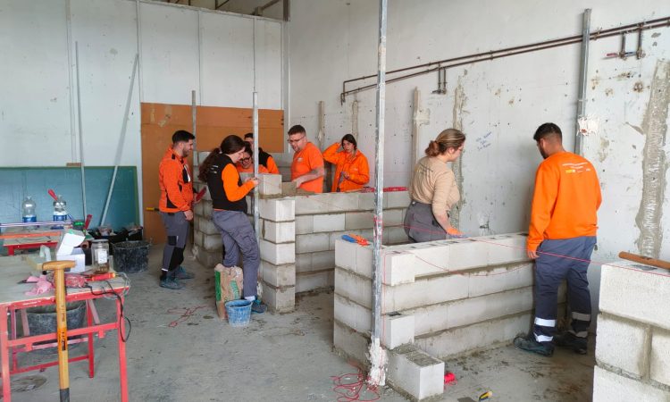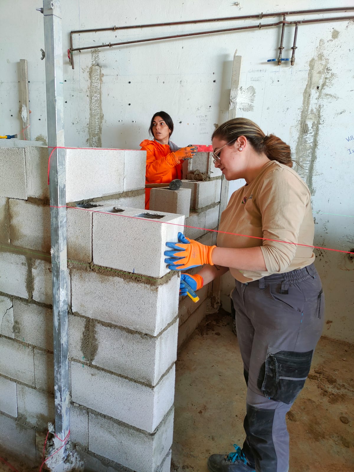 Algunos de los trabajos que están realizando dentro del taller de construcción del certificado de profesionalidad (EOCB0108) Fábricas de albañilería, incluyen la elaboración de pastas, morteros y hormigones, fábricas de revestir y fábricas vista.