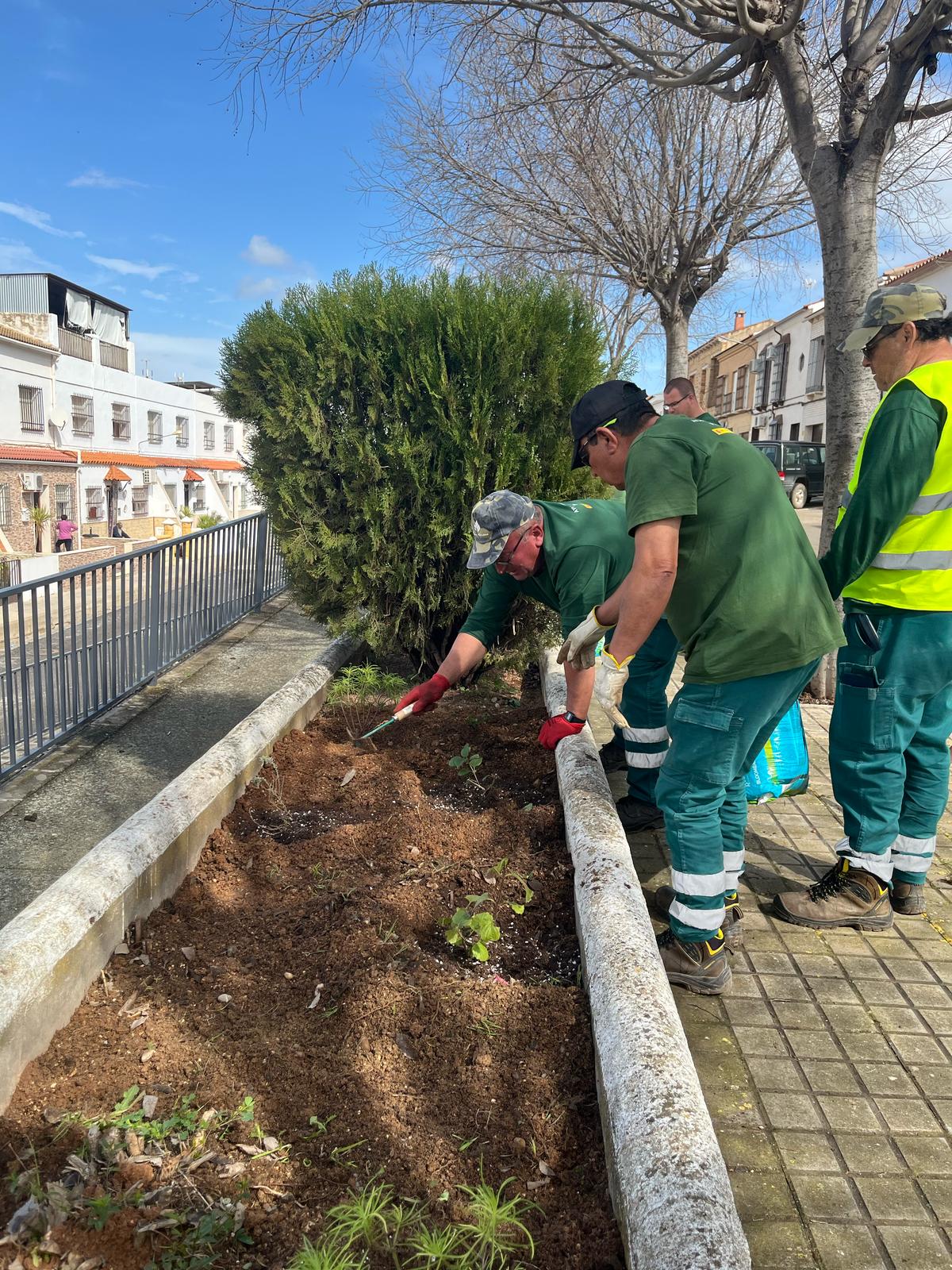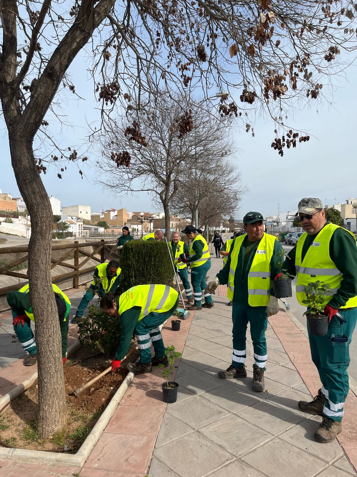 Estos días están llevando a cabo labores de plantación, con el objeto de embellecer todos los rincones de Casariche de cara a la primavera.