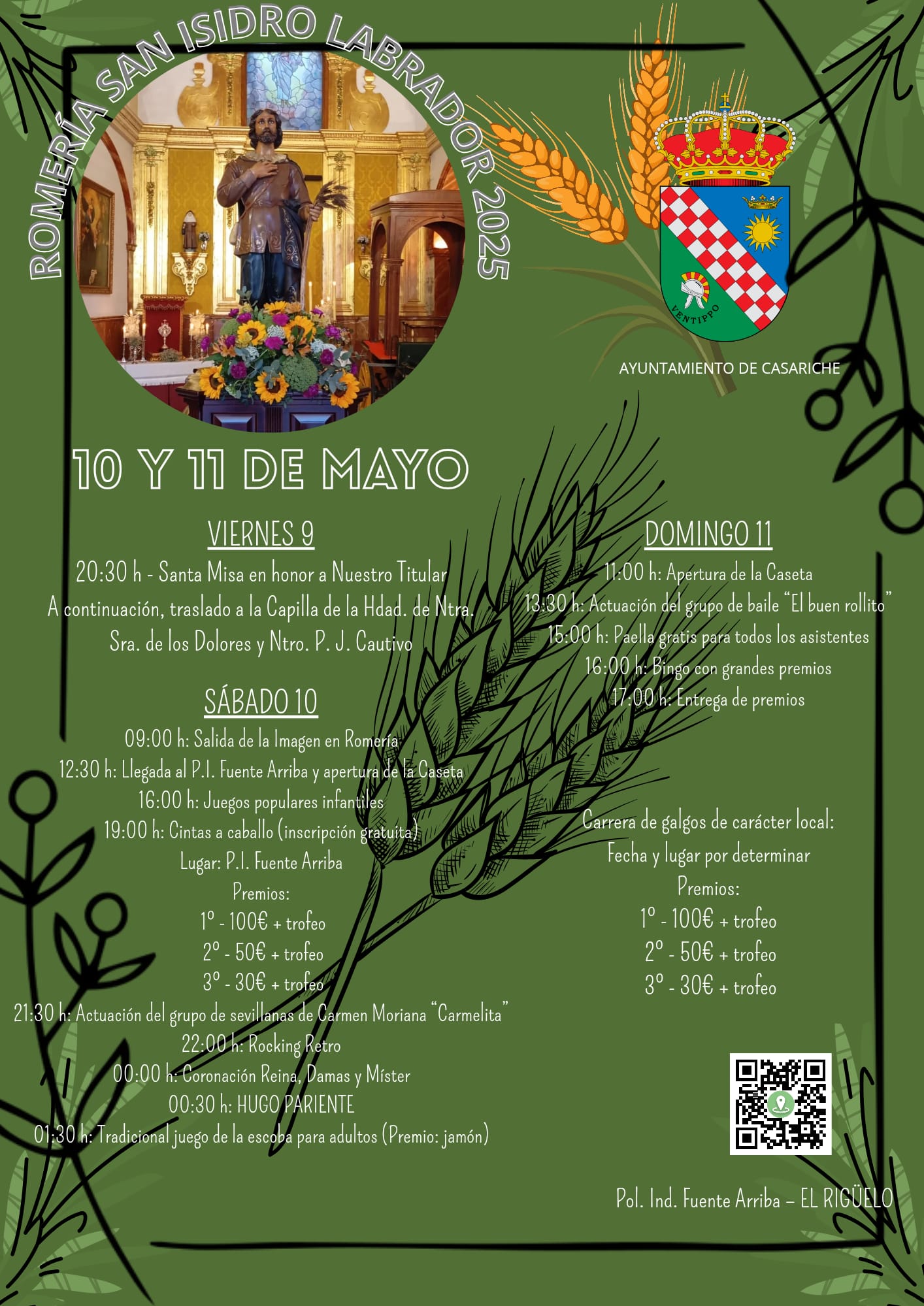 19:00h: Carrera de cintas a caballo en el P.I. Fuente Arriba. La inscripción es gratuita. Premios: 1º: 100€ + trofeo, 2º: 50€ + trofeo y 3º: 30€ + trofeo.