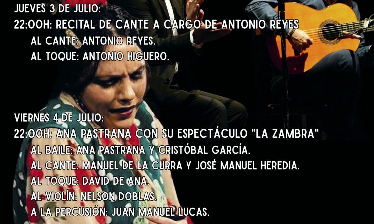 El jueves 3 de julio, a partir de las 22:00 horas, se podrá disfrutar de un recital de cante protagonizado por Antonio Reyes, acompañado a la guitarra por Antonio Higuero, en una noche que promete emocionar a los amantes del flamenco auténtico.