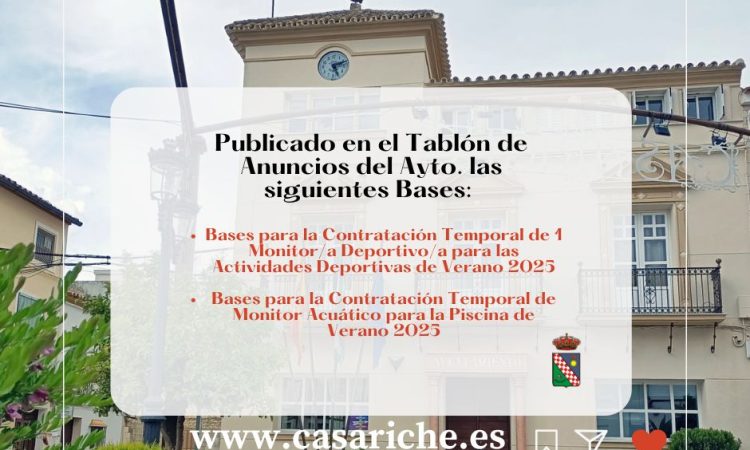 - Bases para la Contratación Temporal de 1 Monitor/a Deportivo/a para las Actividades Deportivas de Verano 2025