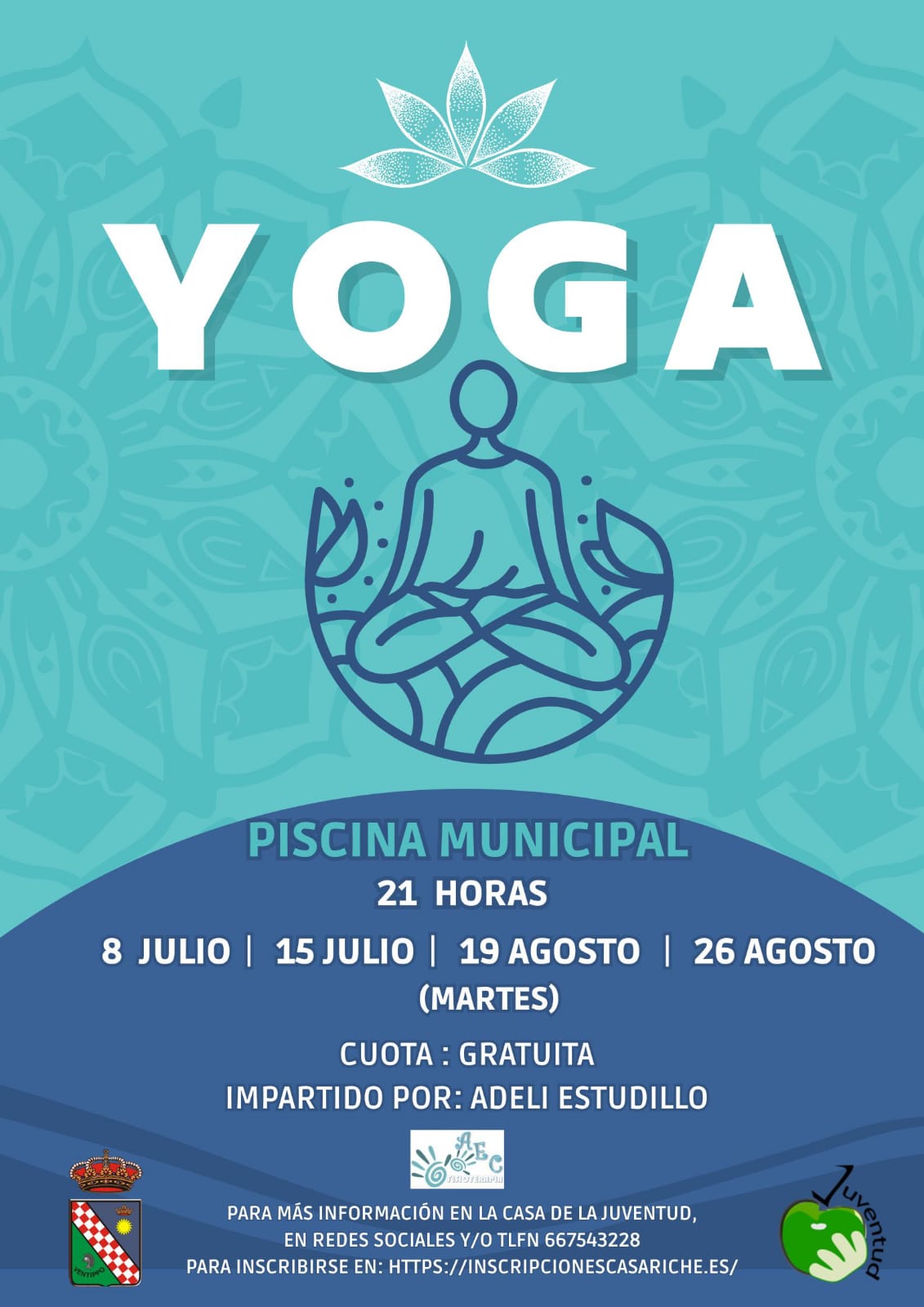 Desde la Delegación de Juventud del Ayuntamiento anunciamos con entusiasmo el regreso de las sesiones de yoga en la piscina municipal, que se celebrarán durante cuatro martes de verano, en un entorno relajante y al aire libre.