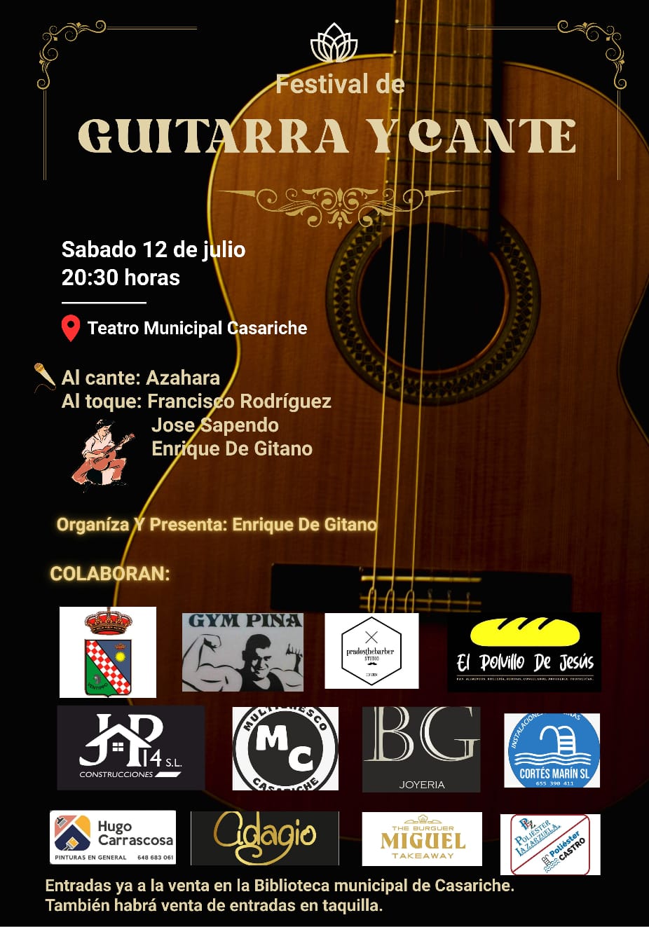 El próximo 12 de julio, a partir de las 20:30 h, el Teatro Municipal de Casariche acogerá el Festival de la Guitarra y el Cante, una nueva cita con nuestro arte flamenco.