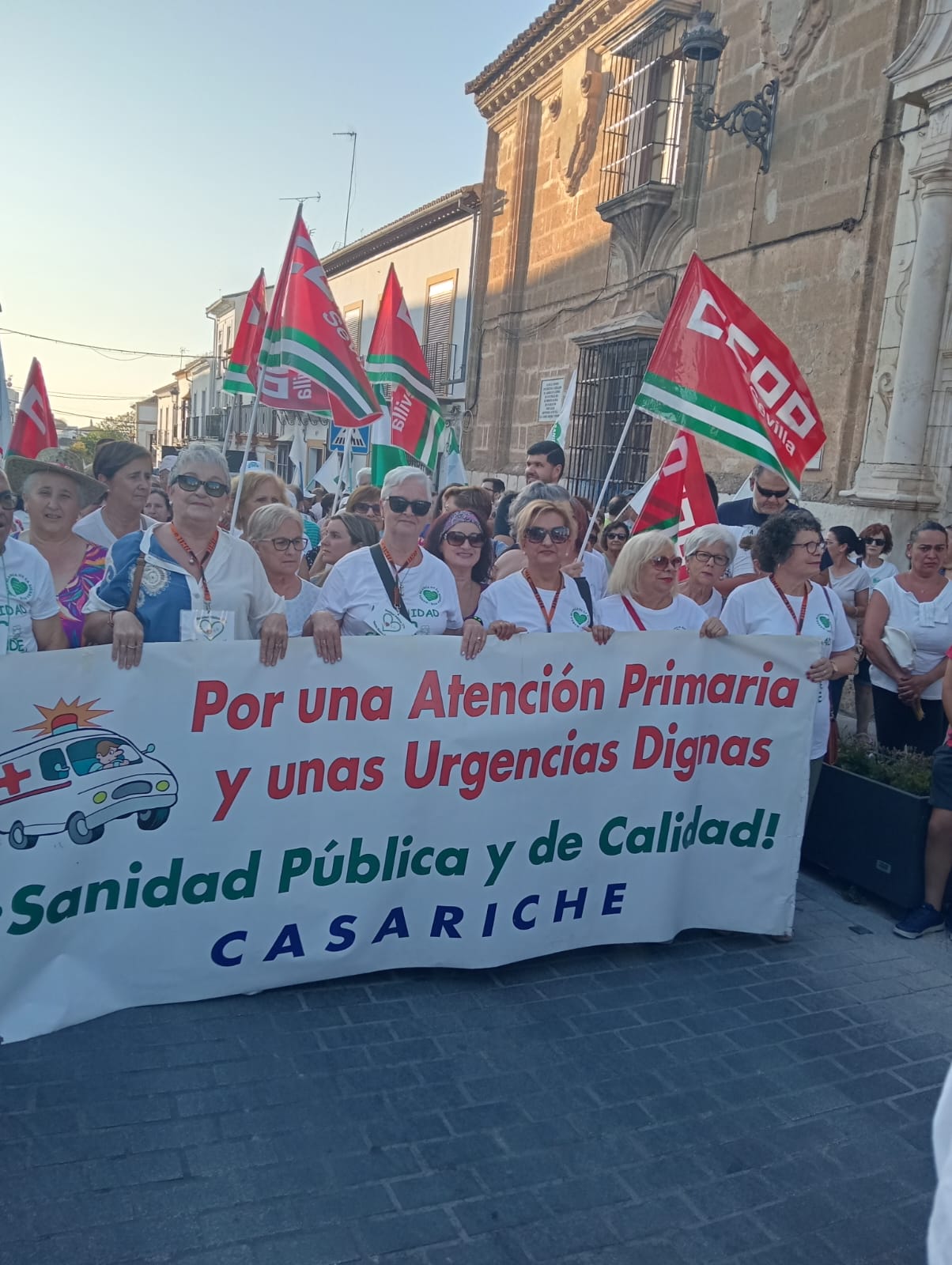Entre los asistentes se encontraba una nutrida representación de Casariche, con la presencia de Marea Blanca Casariche, nuestro alcalde, varios concejales y numerosos vecinos y vecinas que quisieron alzar su voz por una causa común que nos afecta a todos como es la atención sanitaria.