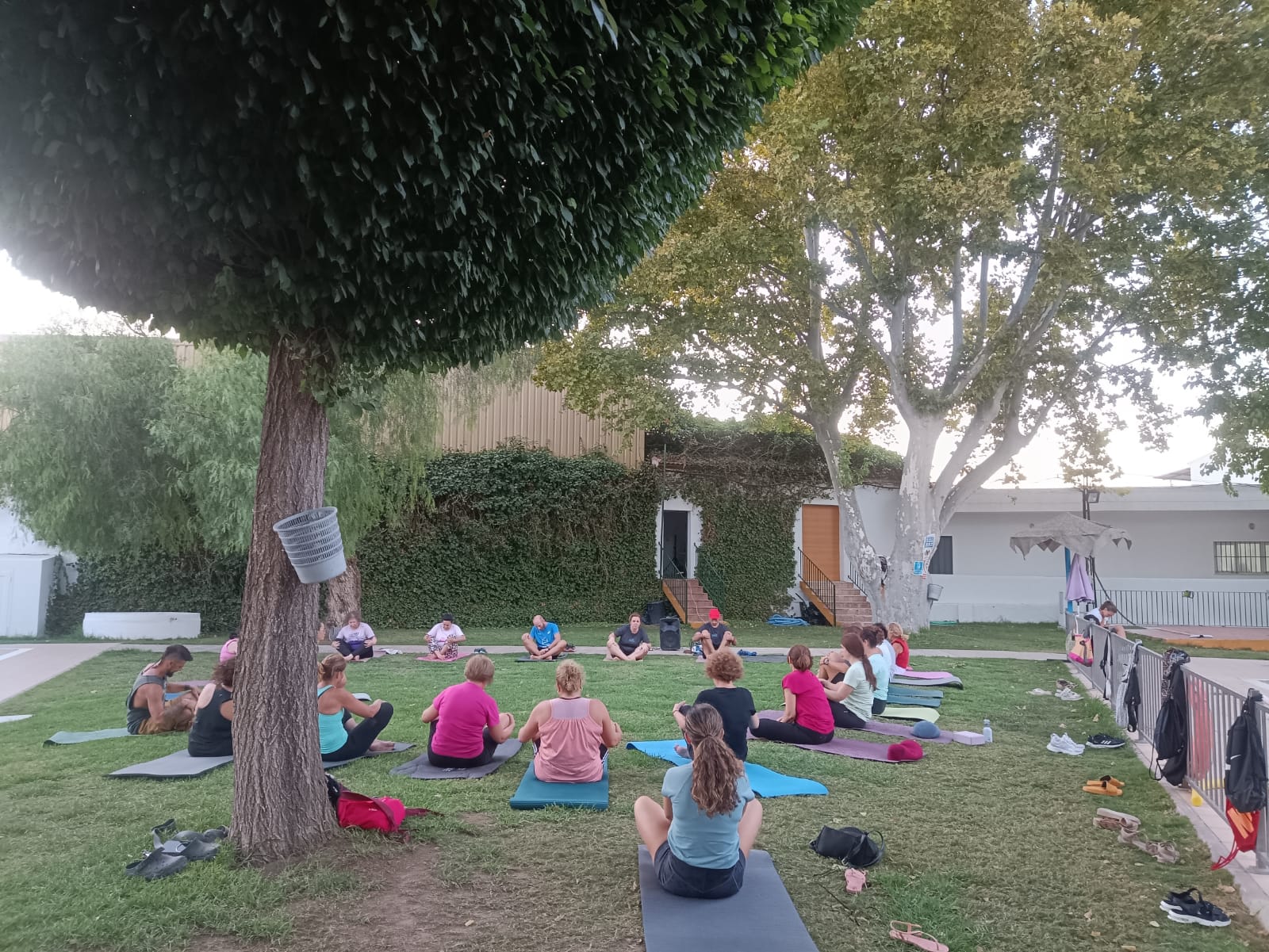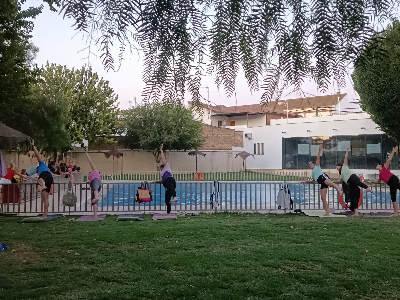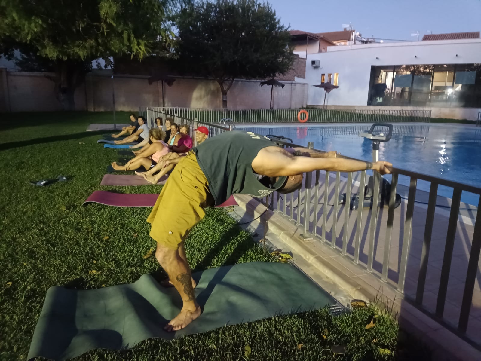 El jueves pasado se celebró la última sesión de yoga al aire libre de este verano en la Piscina Municipal, poniendo fin a una actividad que ha contado, una vez más, con una excelente acogida.