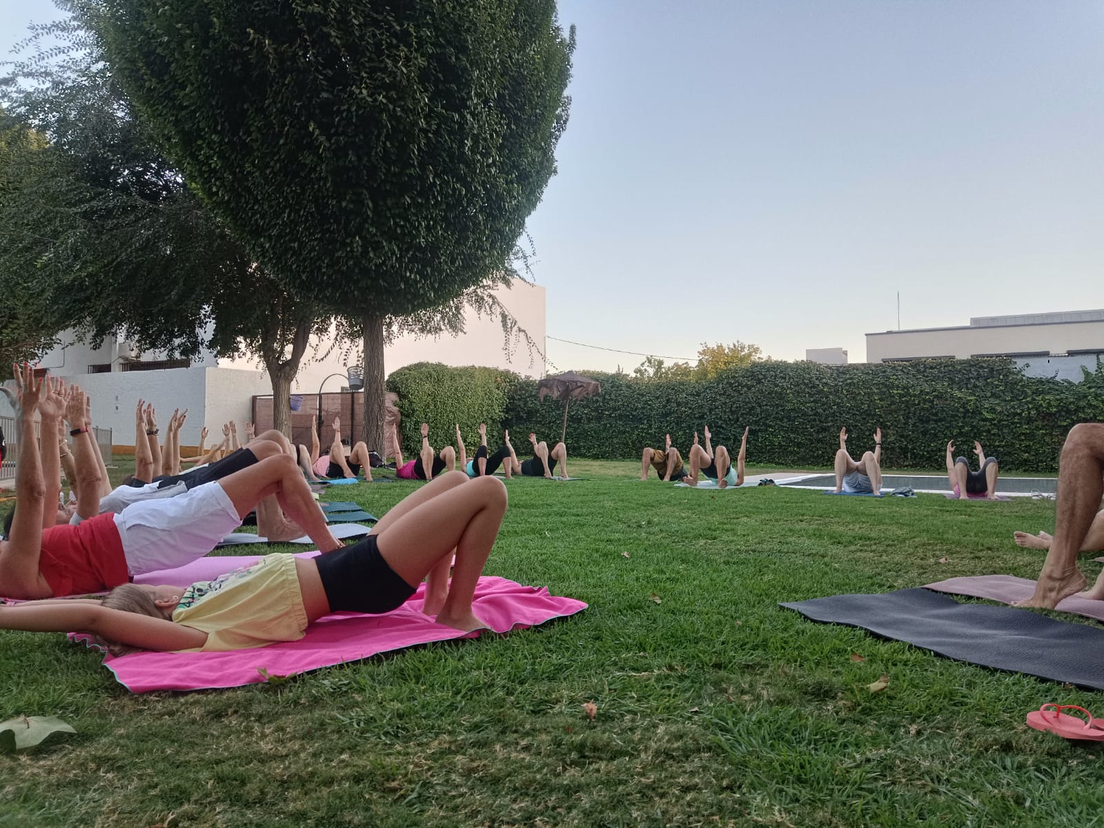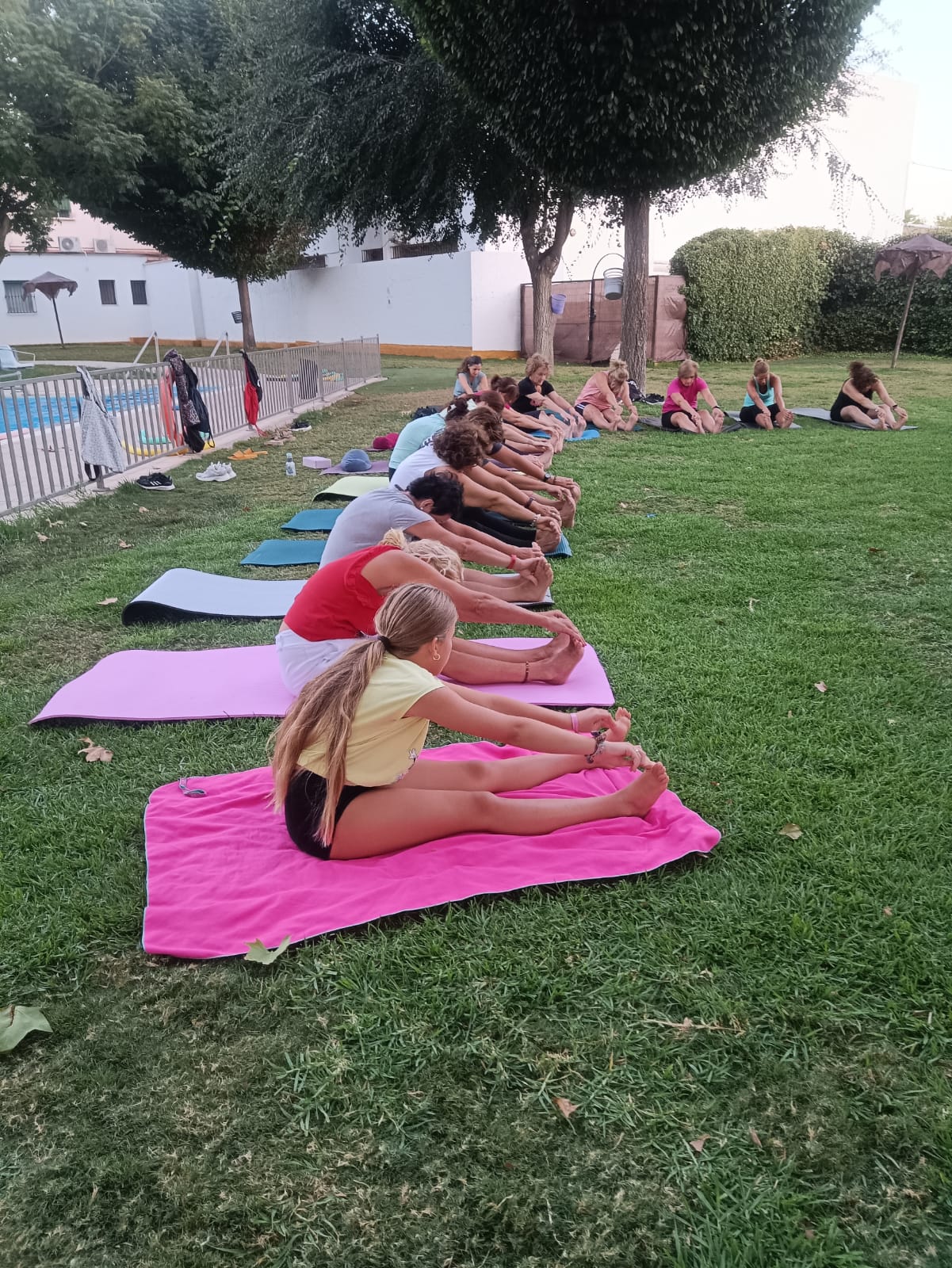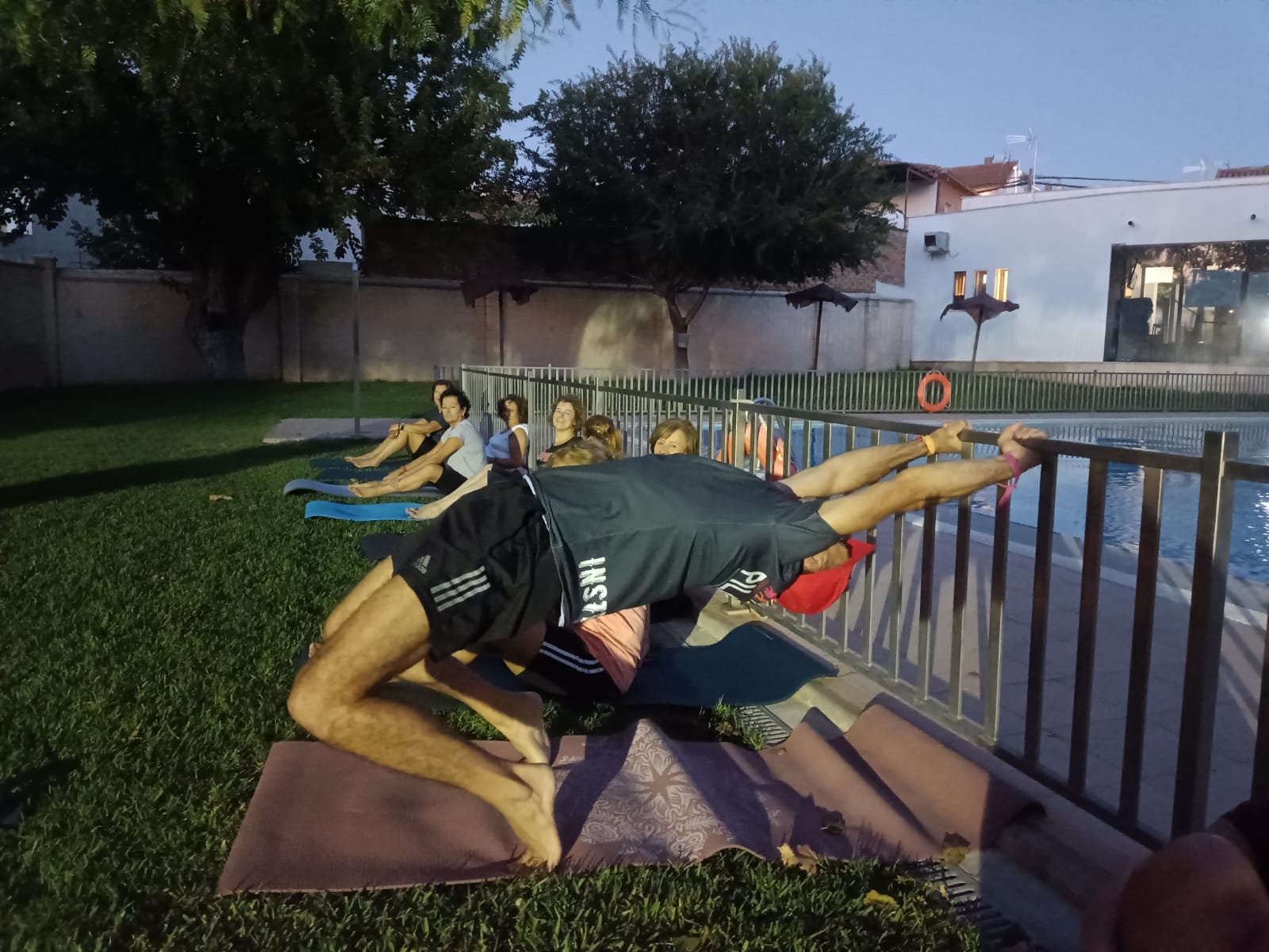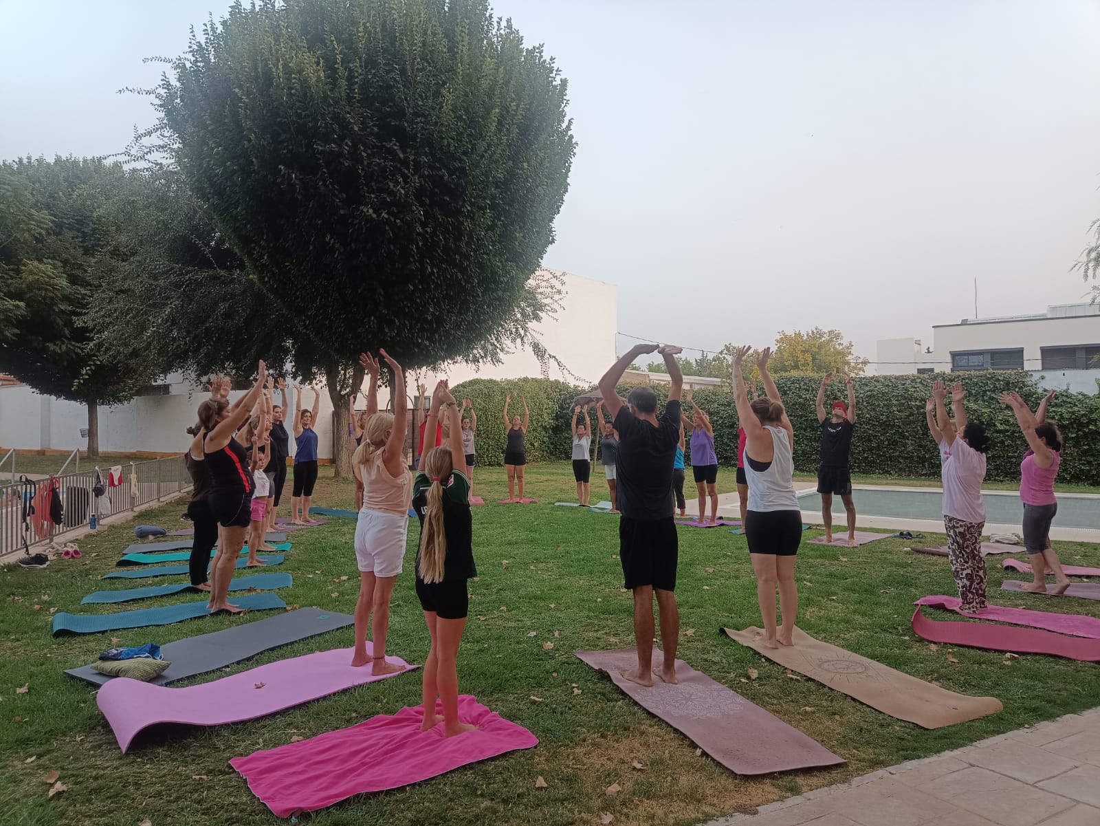 El jueves pasado se celebró la última sesión de yoga al aire libre de este verano en la Piscina Municipal, poniendo fin a una actividad que ha contado, una vez más, con una excelente acogida.