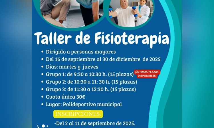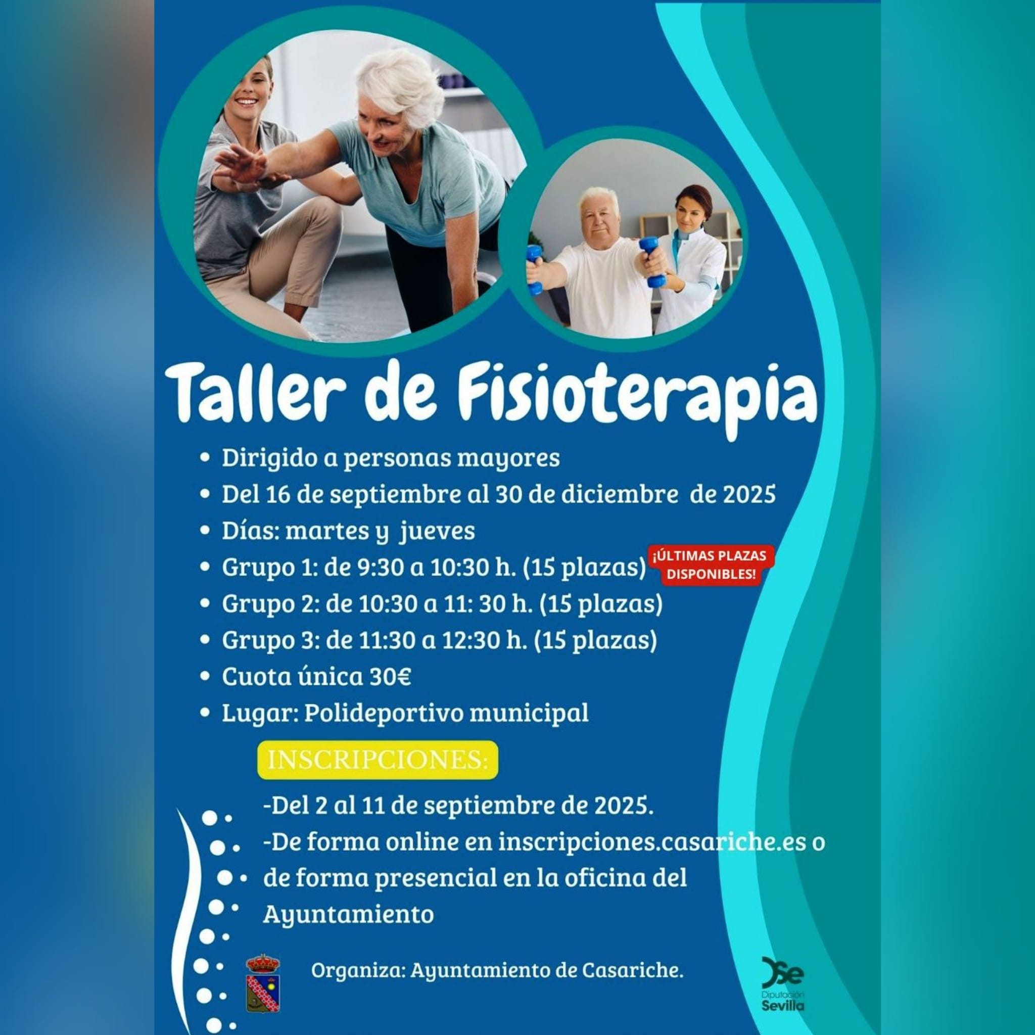 El próximo martes 16 de septiembre dará comienzo en nuestra localidad el Taller de Fisioterapia dirigido a Personas Mayores, una iniciativa incluida dentro del Programa de Envejecimiento Activo 2025, promovido por el Ayuntamiento de Casariche.