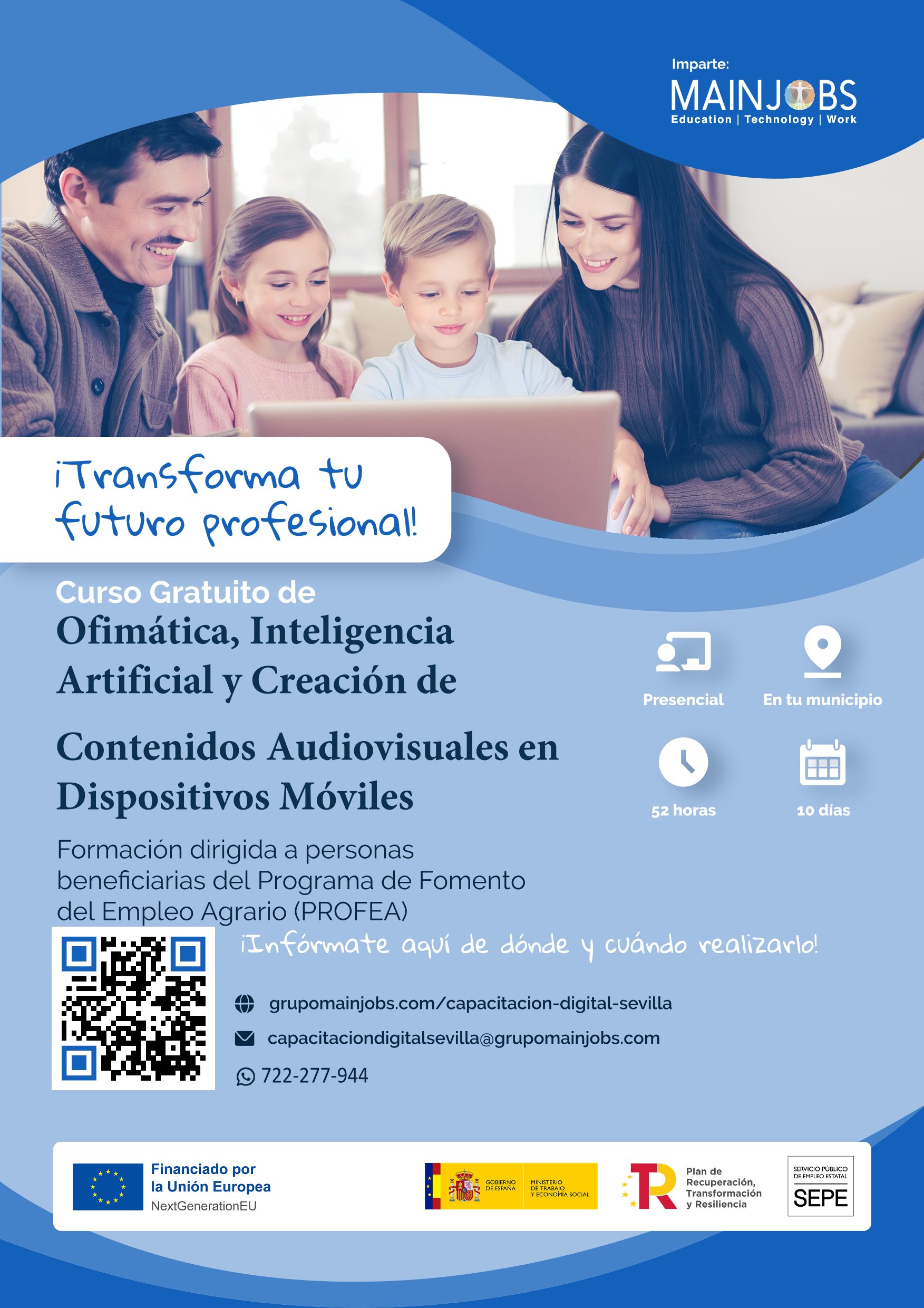 Para conocer todos los detalles de la formación, se puede visitar la web: grupomainjobs.com/capacitacion-digital-sevilla, o contactar por email: capacitaciondigitalsevilla@grupomainjobs.com y/o teléfono 722 277 944.