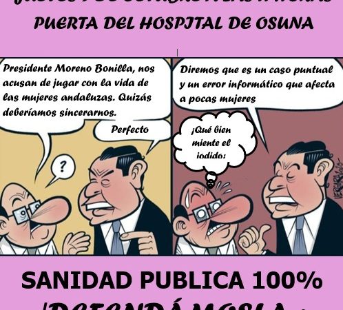 Informamos que Marea Blanca Casariche participará en una nueva acción reivindicativa en defensa de la sanidad pública. Bajo el lema ‘Pancartada en defensa de la Sanidad Pública’, la movilización tendrá lugar este jueves, 9 de octubre, a las 11:00 h, en la puerta del Hospital de Osuna