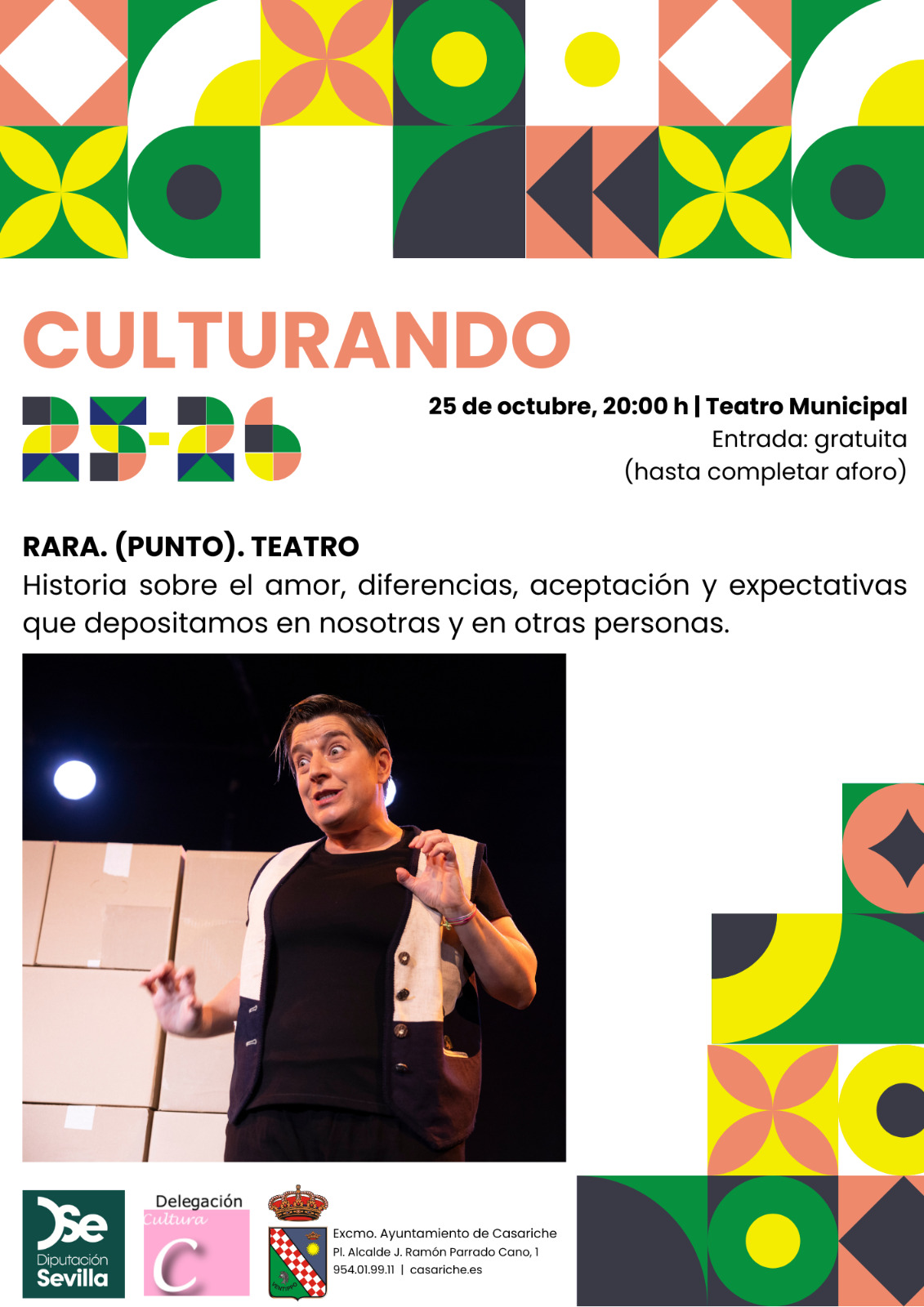 Casariche acoge este sábado 25 de octubre, «Rara (Punto). Teatro», dentro del marco del programa cultural Culturando 2025-26.