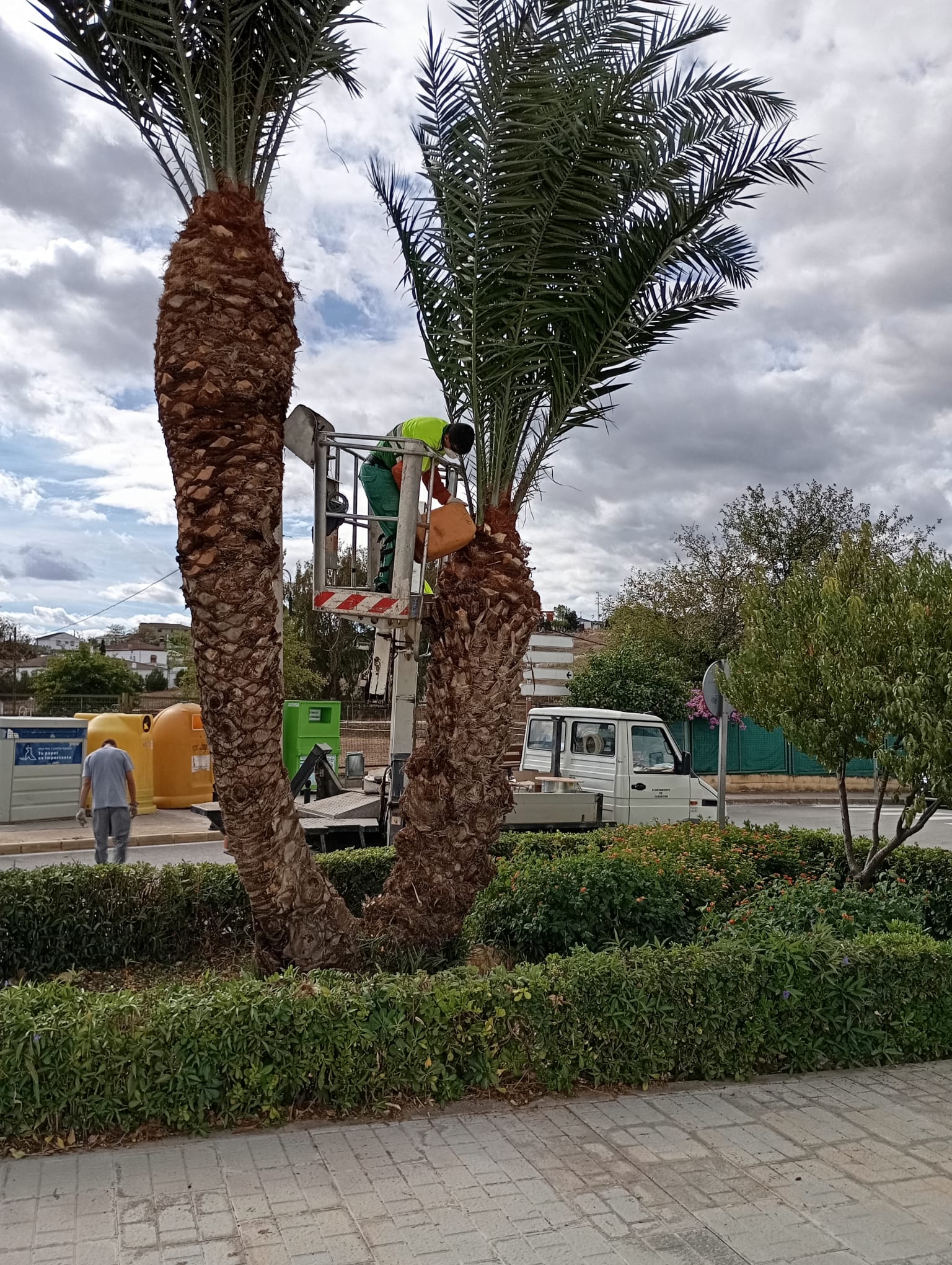 Durante esta semana, los operarios municipales del Ayuntamiento de Casariche están llevando a cabo labores de poda de palmeras en distintas zonas de nuestra localidad.