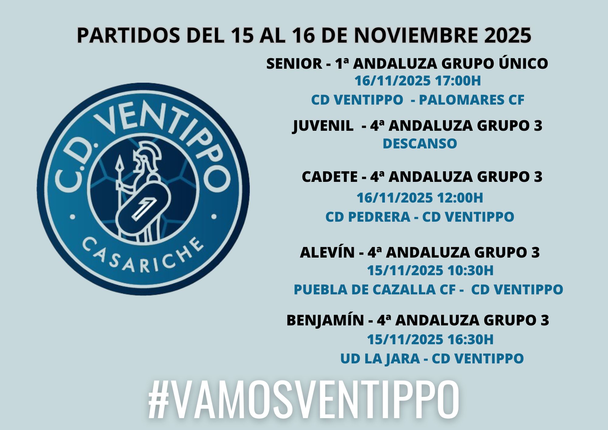 En cuanto al CD Ventippo, este fin de semana jugarán cuatro de sus cinco categorías: