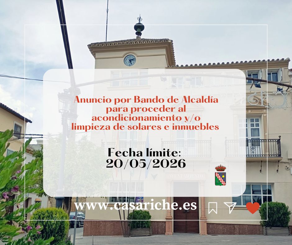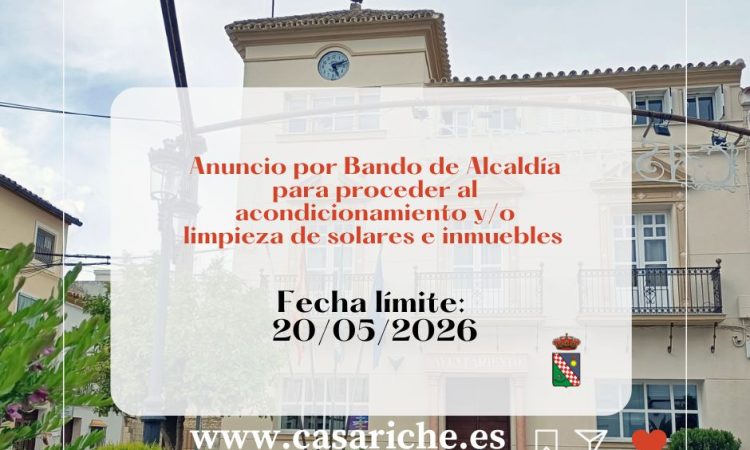 Desde la Delegación de Medio Ambiente se informa a todos los propietarios y propietarias de solares y/o inmuebles que deberán proceder a su limpieza y adecuado acondicionamiento.