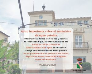 Informamos a todos los vecinos y vecinas de la localidad que se ha producido una avería en la Red General del Suministro de Agua y,