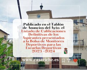 Desde el Ayuntamiento informamos que ya se puede consultar tanto en el Tablón de Anuncios del Ayuntamiento como en el E-Tablón el Listado de Calificaciones